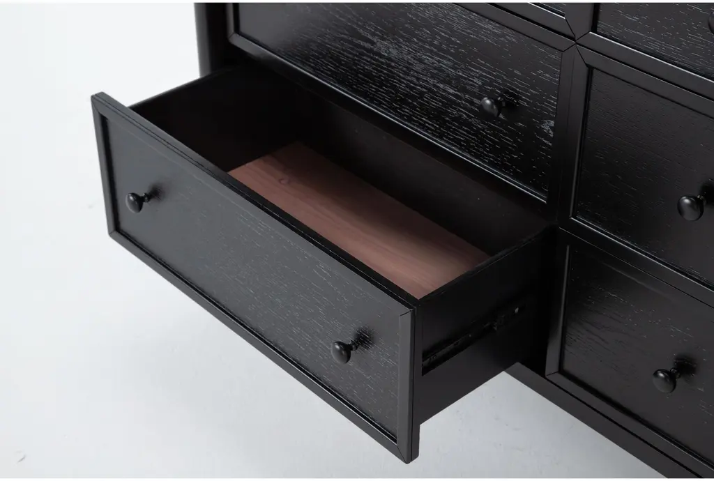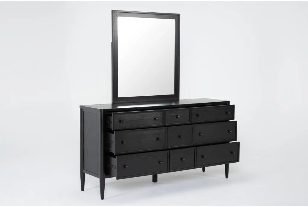 Austen Black Wood 9-Drawer Dresser With Mirror