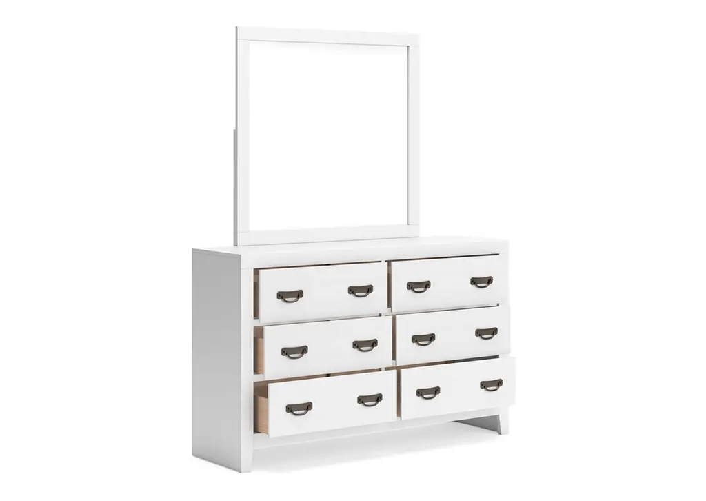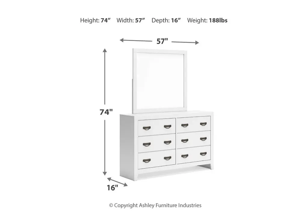 Are you a lover of casual contemporary style? Then the Binterglen dresser with mirror is perfect for you. The clean, white finish conveys an easy-breezy sensibility, while spacious drawers offer plenty of storage. Durable, sleek and stylish, it graces your space with timeless appeal. Weight 188.000 lbs. (84.6kgs.)