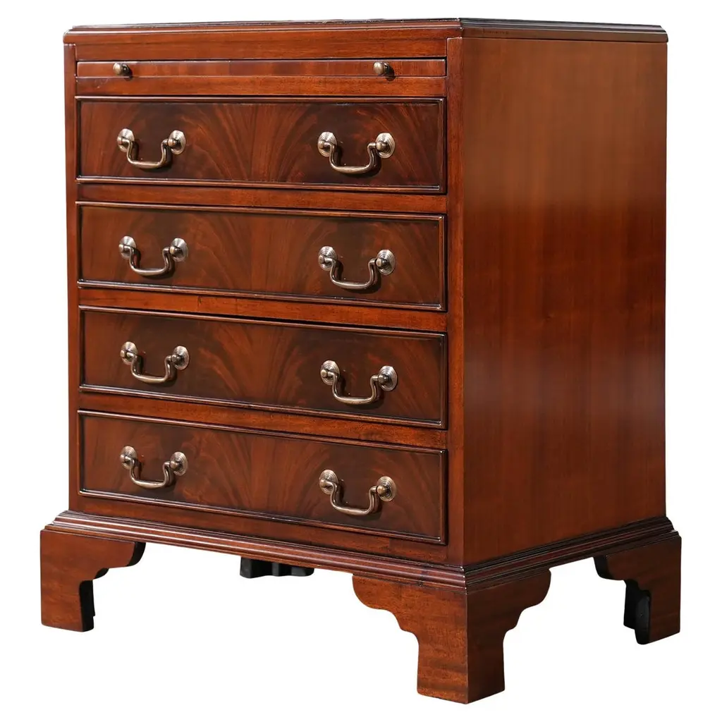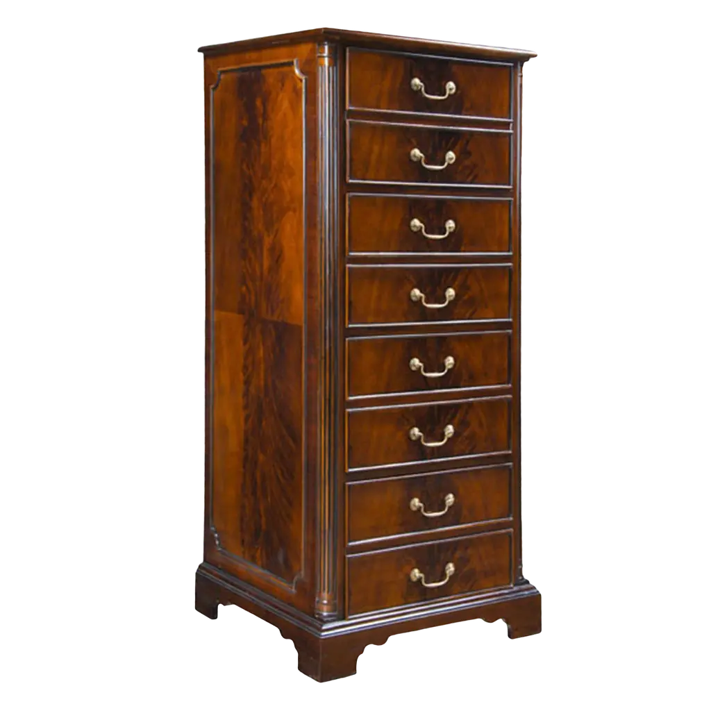 Celebrate the traditional soul and sophisticated beauty of Federal and Georgian design with this majestic Charleston Seven-Drawer Dresser. The 7 self-closing drawers have cherry-colored interiors. The top three drawers have removable felt liners, the top middle drawer has a removable felt jewelry tray and the bottom two drawers have cedar-lined bottoms.