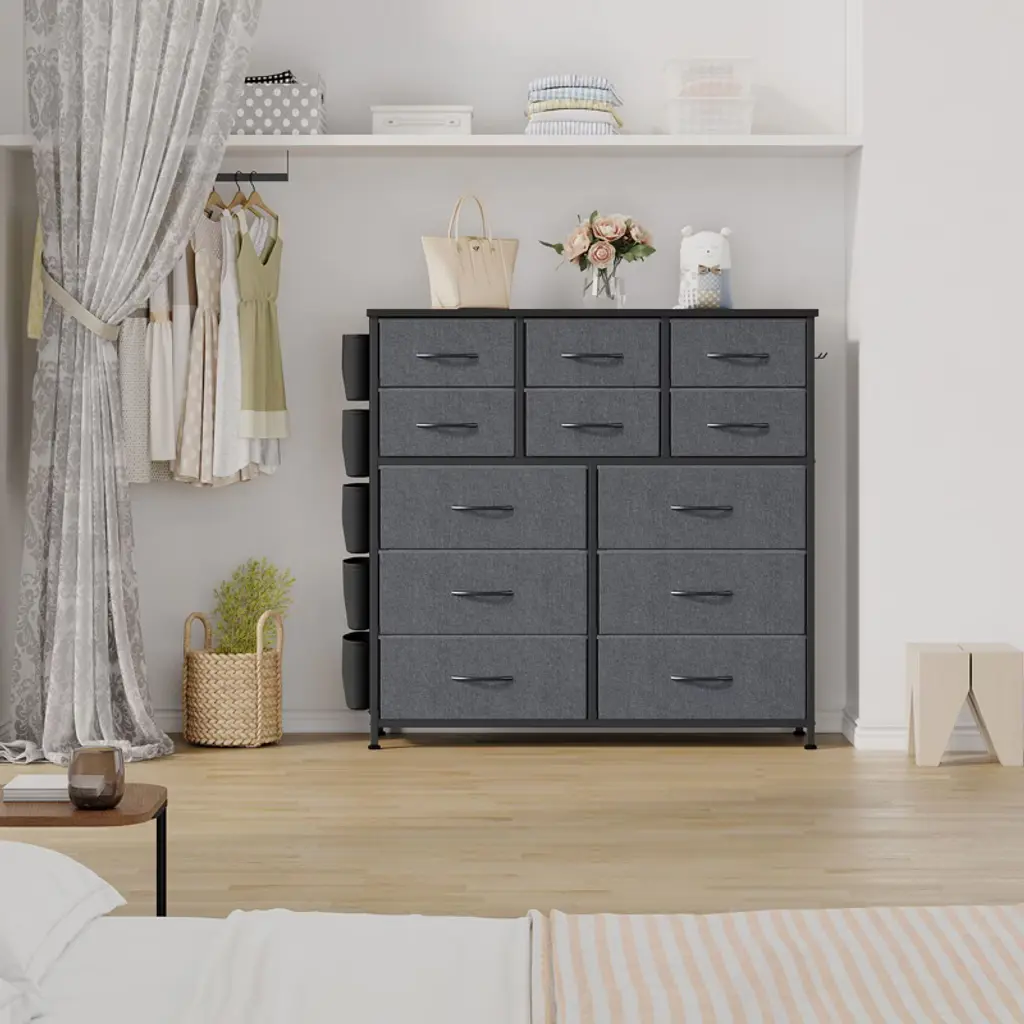 12 Drawer Dresser For Bedroom, Fabric Dressers & Chests Of Drawers With Side Pockets,darkgray