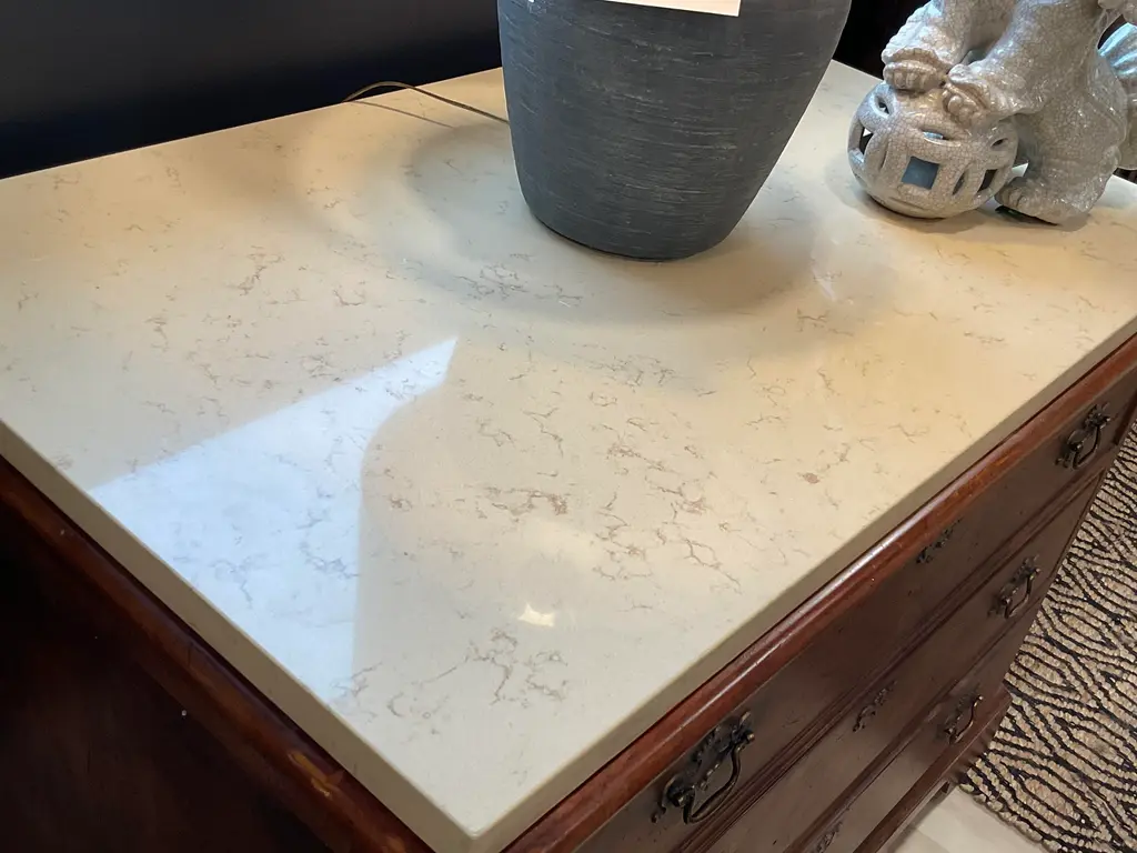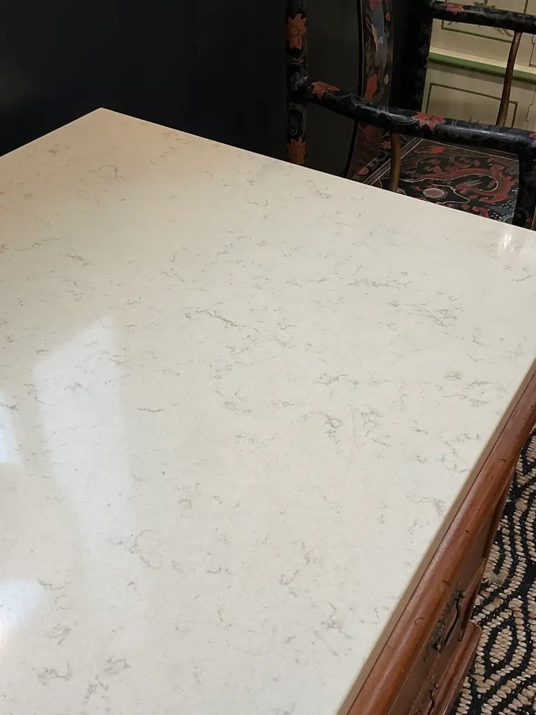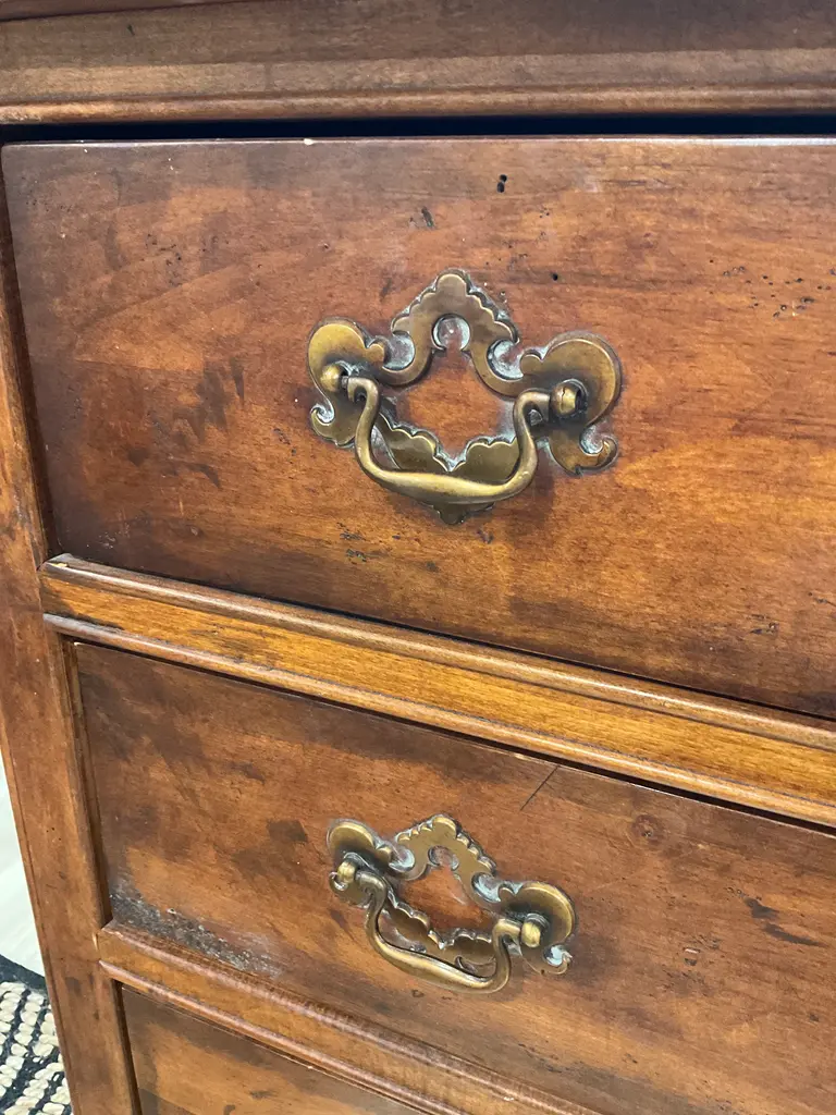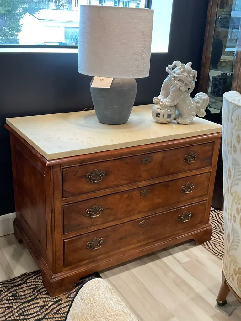 1 of 2 Monumental Chests of Drawers from Century Furniture. Naturally Distressed finish, beautiful hardware and cream stone tops. These are huge and have a heavy European rustic feel. (Italian farmhouse). $6800 each as new in the 1980's. Condition Disclosure: Please understand nearly all of our inventory is comprised of rare to very rare vintage pieces. They are not new and will have some imperfections, it's part of the charm and history of owning a vintage piece. Understand what you're purchasing as not to be new furniture. Use the photos as your guide, they are part of the description. We strive to secure the finest vintage inventory available to us, our criteria is stringent and expectations are high, however these are vintage pieces that have shared a past life.