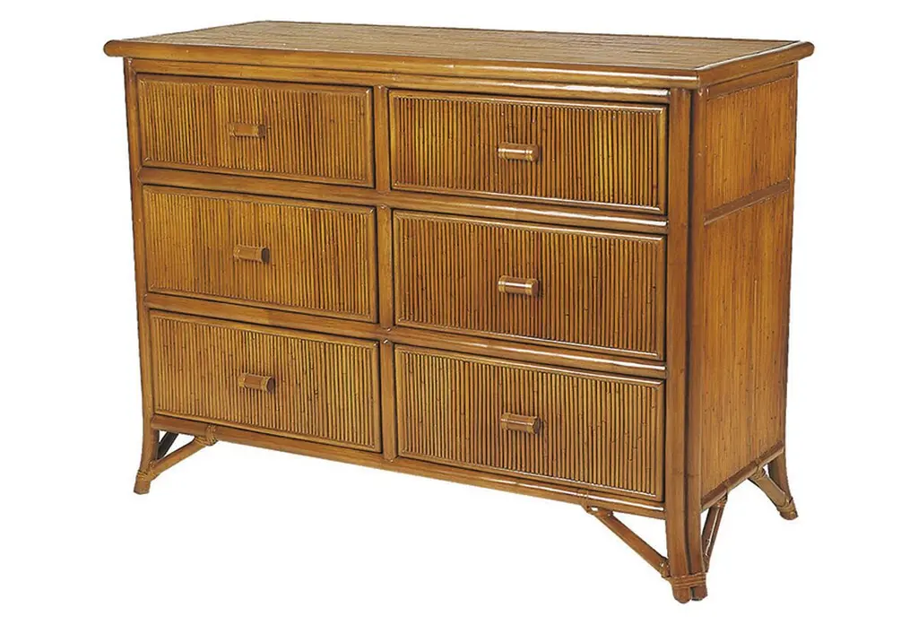 A spot-on addition to refined bedrooms of traditional Asian inspiration, this chest of drawers boasts a stately and rigorous structure obtained from the minute manual assembly of bamboo canes. Leather bindings enrich its timeless design, which gains subtle sartorial charm. Part of a limited-edition series, it offers plenty of storage space thanks to its three ample drawers.