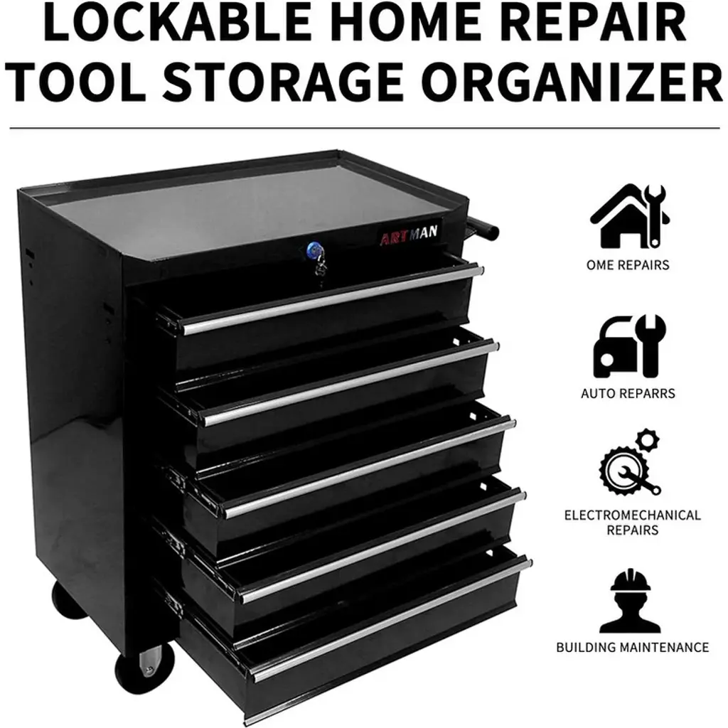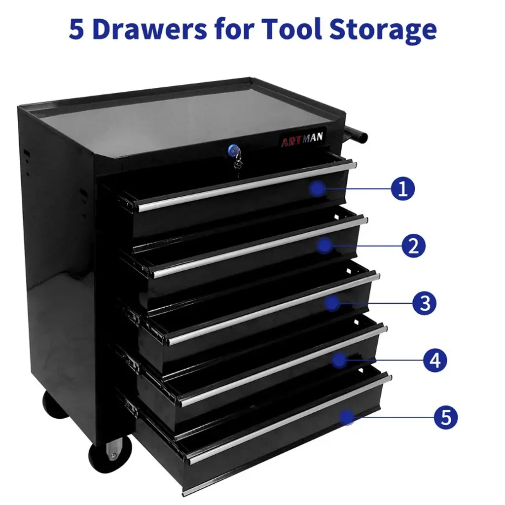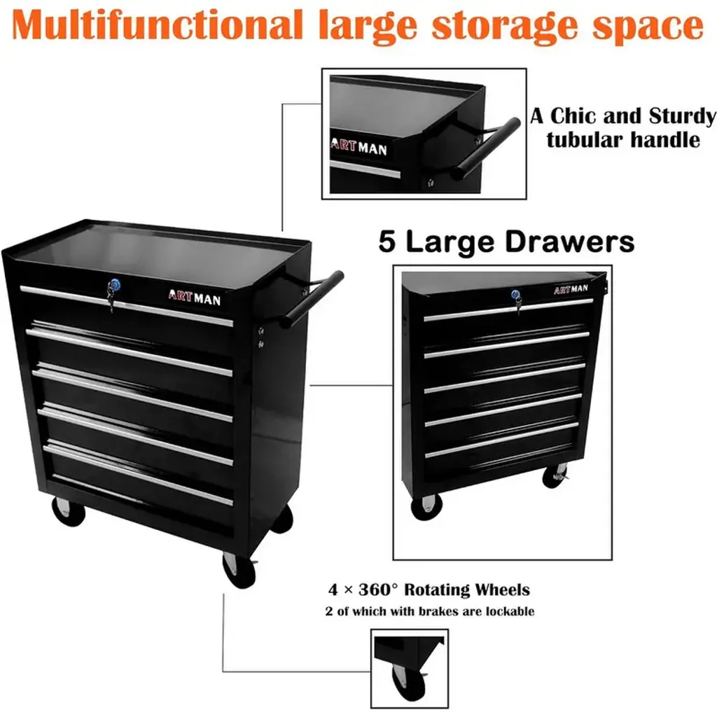 5-Drawer Rolling Tool Cart With Wheels Garage Storage Tool Chest - Black