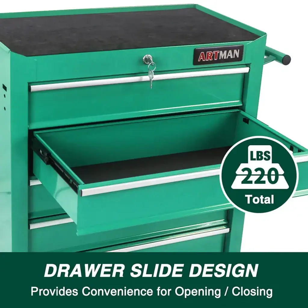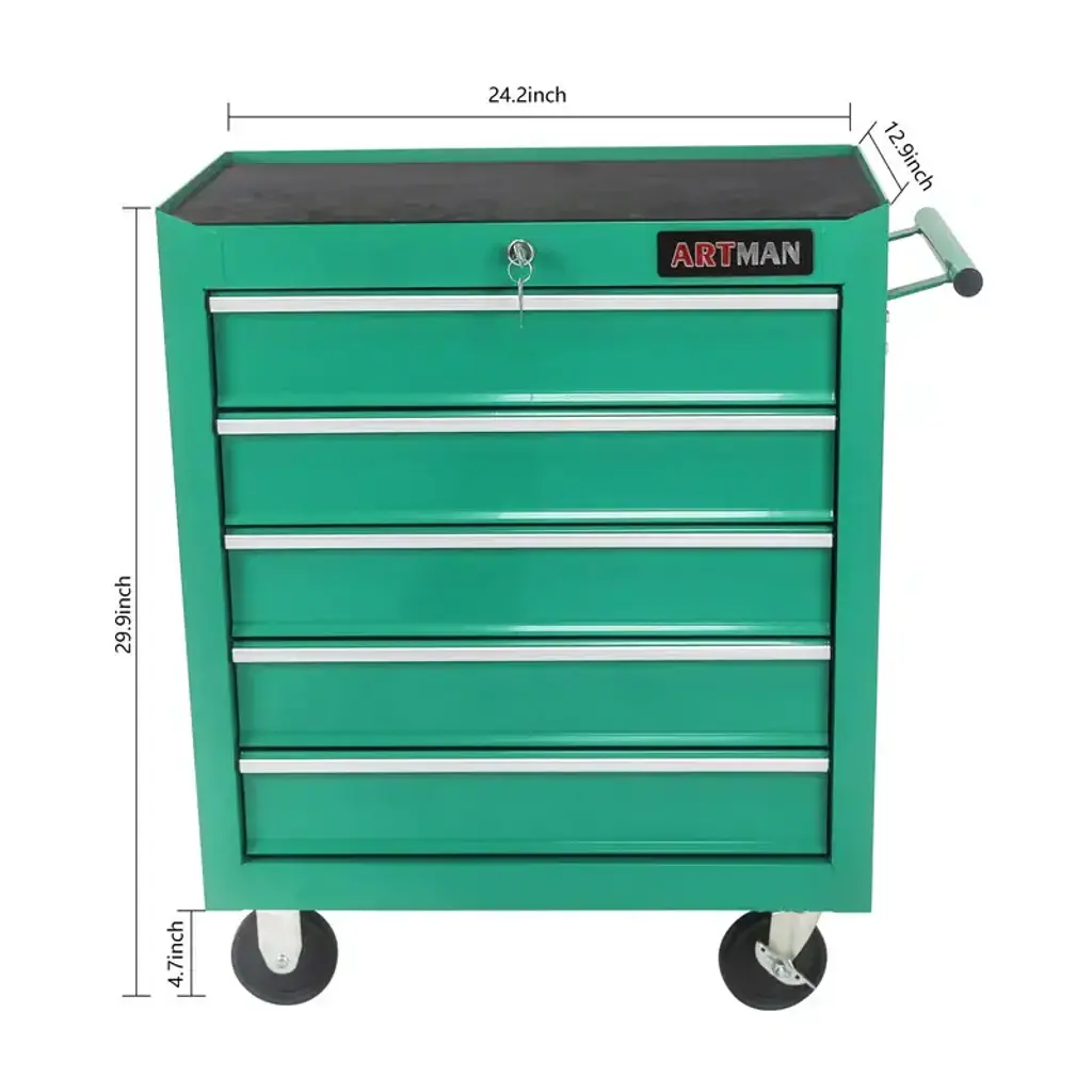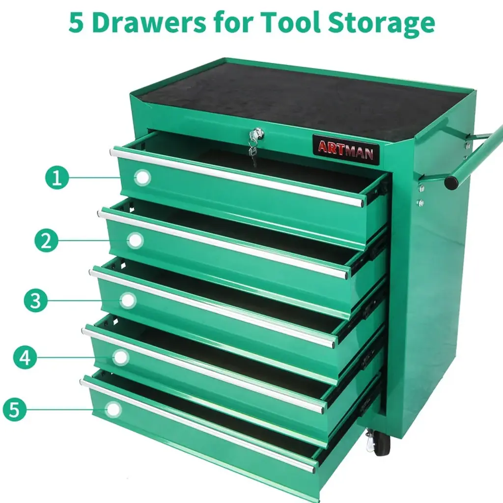 5-Drawer Rolling Tool Cart With Wheels Garage Storage Tool Chest - Green