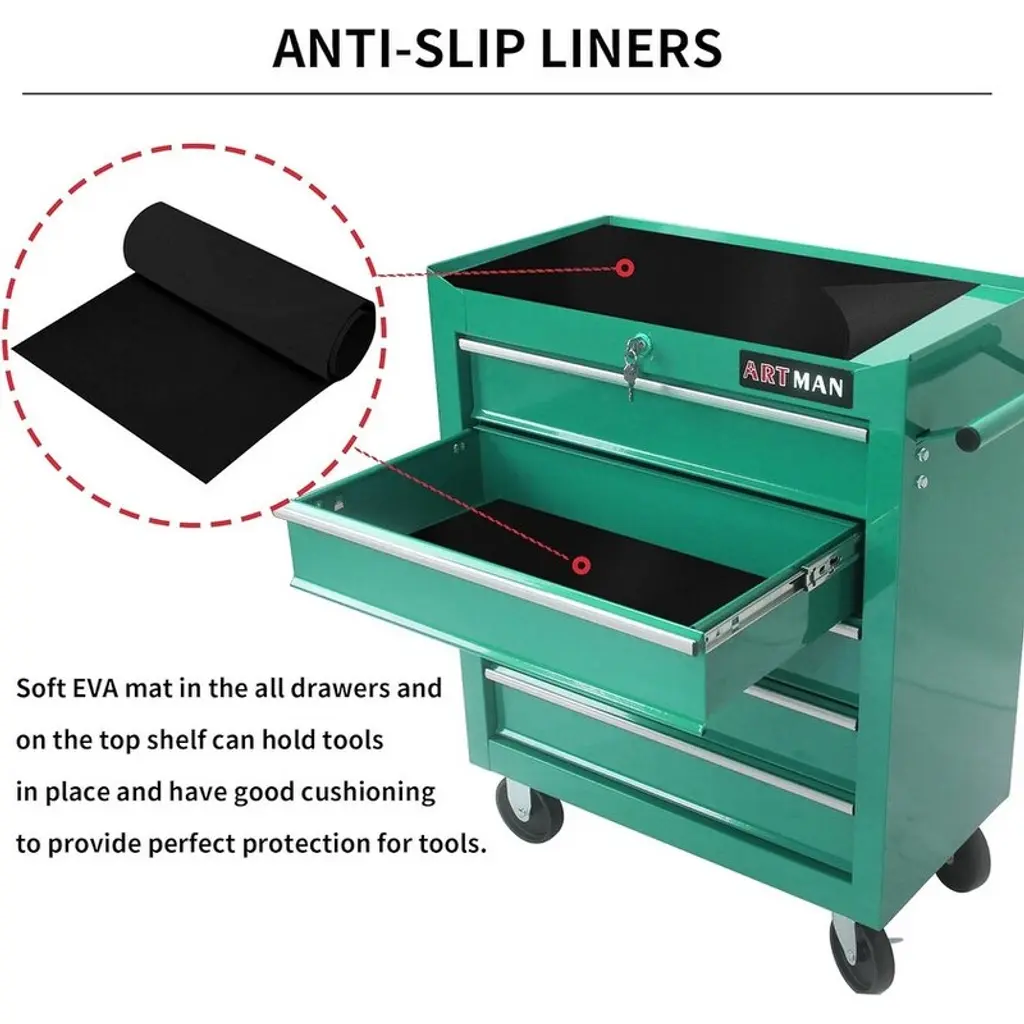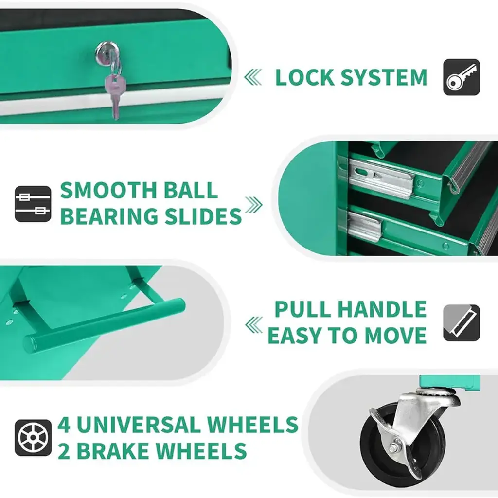 This rolling tool cabinet is made with high quality steel to ensure maximum durability and toughness. also this tool chest has superior powder coat finish which can protect it from Scratching, denting, breaking or chipping. Product Information:Product Features: