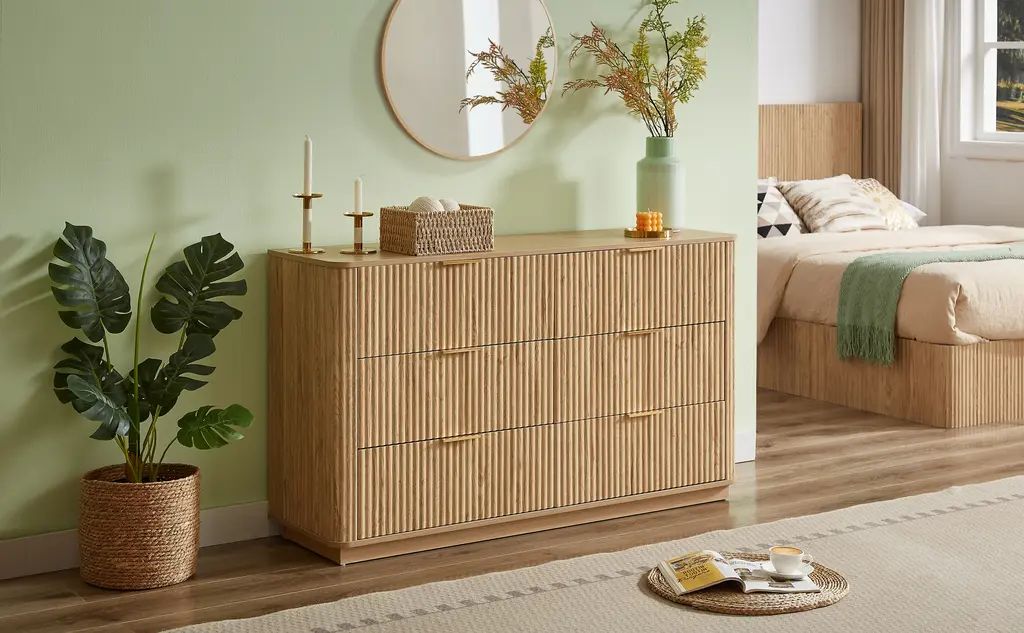 Product information Product Type 6 Drawers Dresser Color Oak Material Particleboard + MDF Product Size 55.1'' W x 15.7'' D x 31.5'' H Top Weight Capacity 150LBS (uniform distribution) Each drawer Weight Capacity 22 LBS Assembly Required about 1.5 hours Package Number 1 Package Contents 1 x Drawers Dresser, 1 x assembly Kit, 1 x instruction