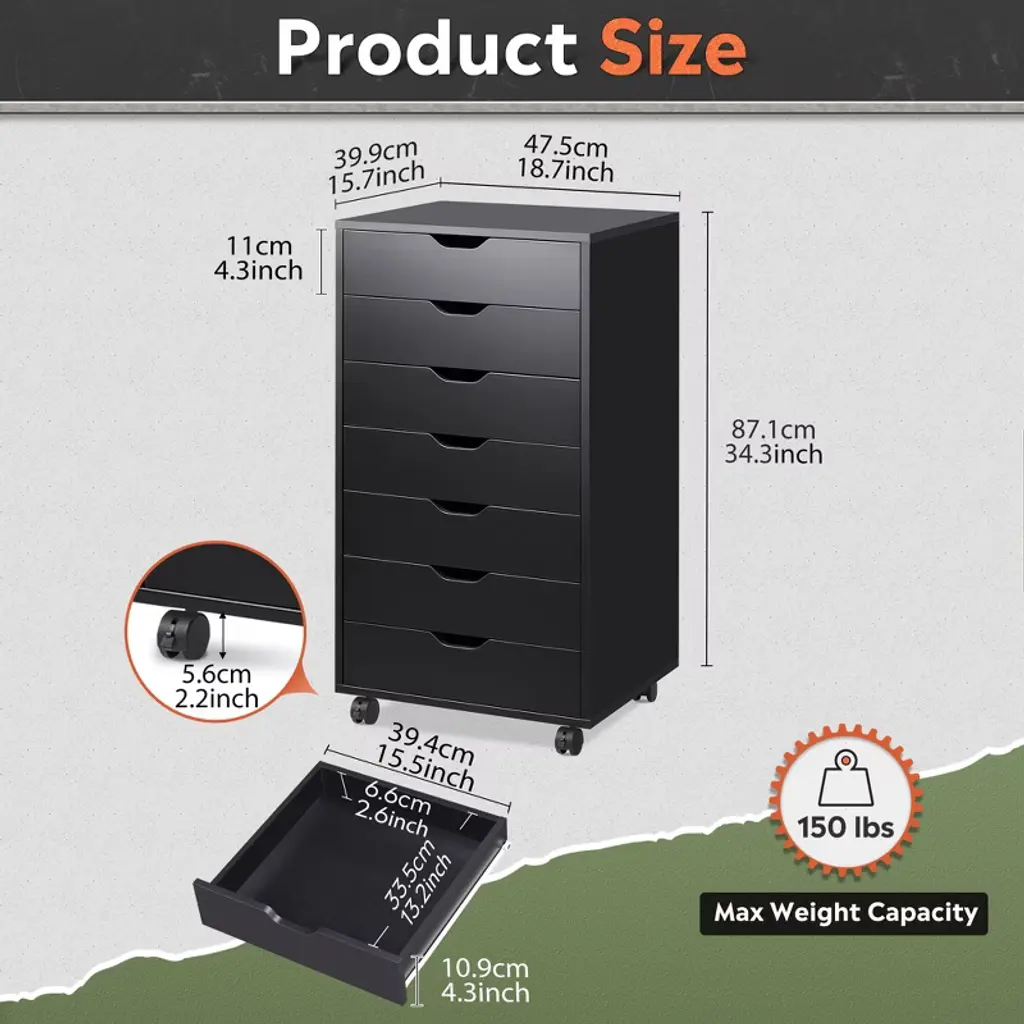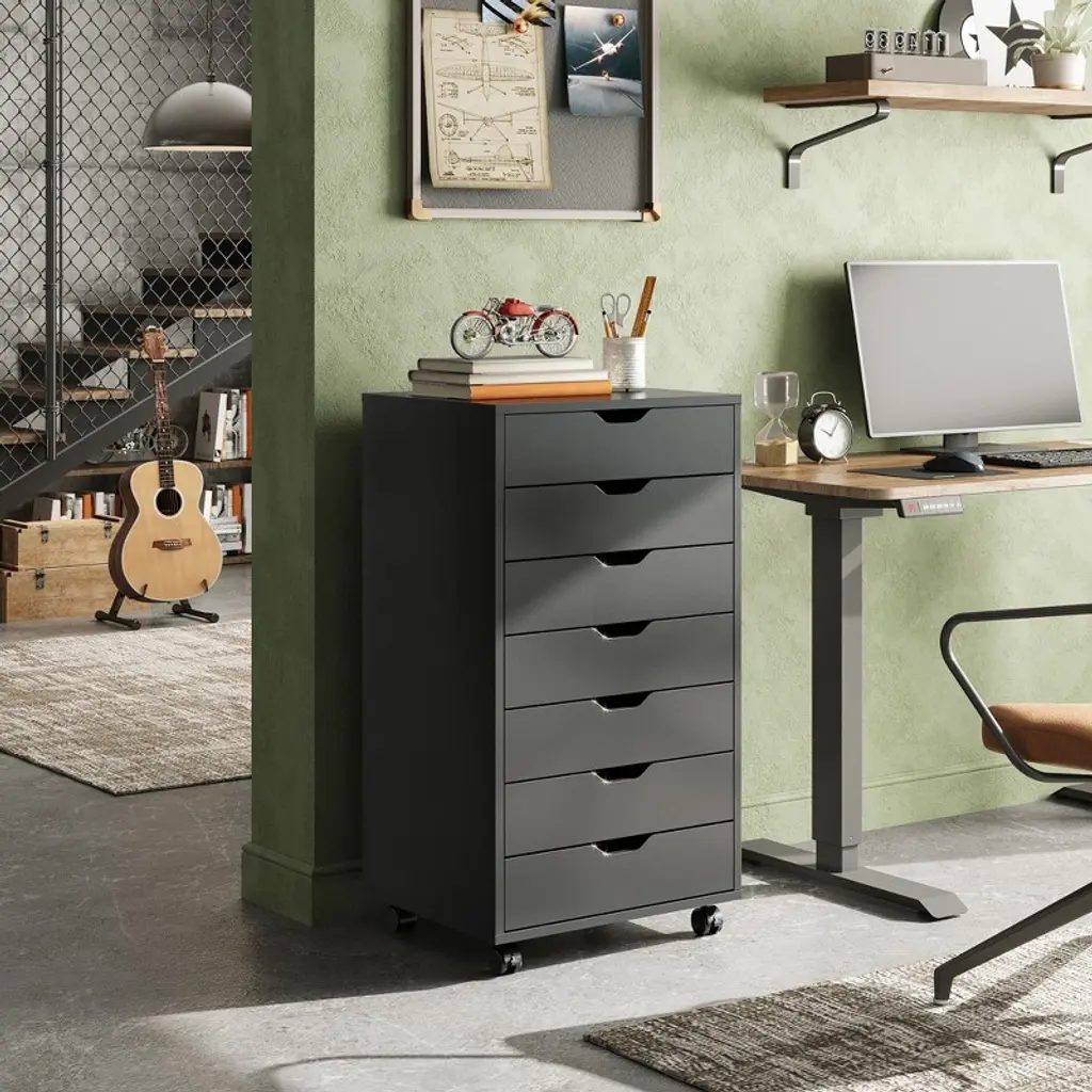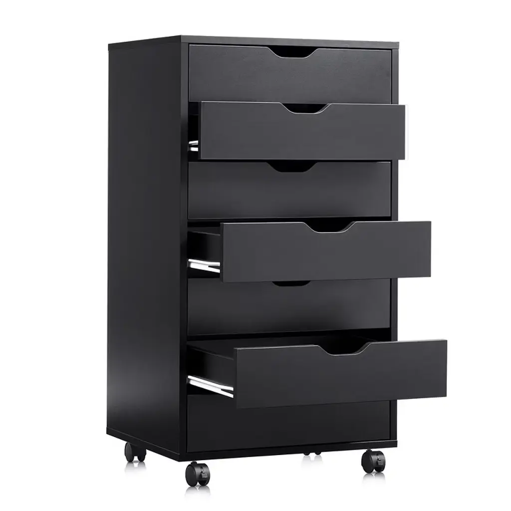 7-drawer Chest, Wood Storage Dresser & File Cabinet With Wheels, Black