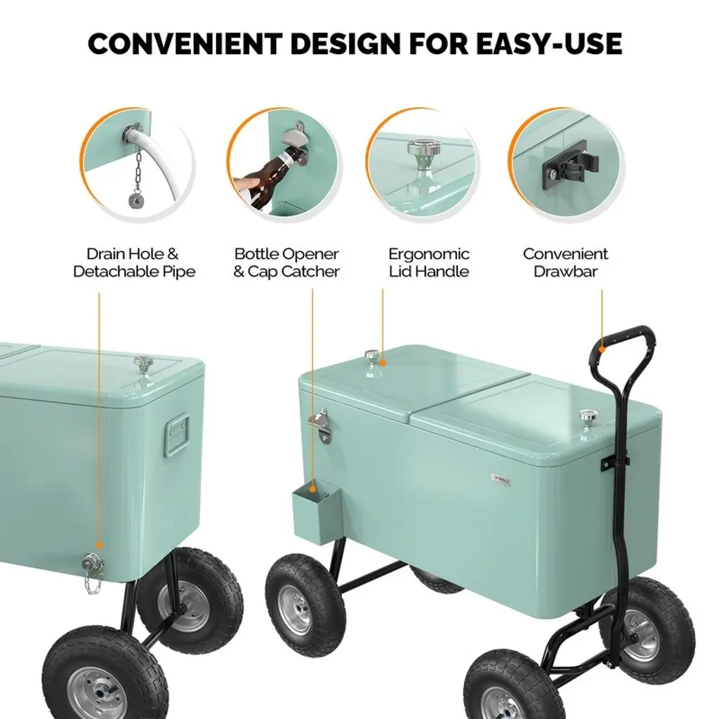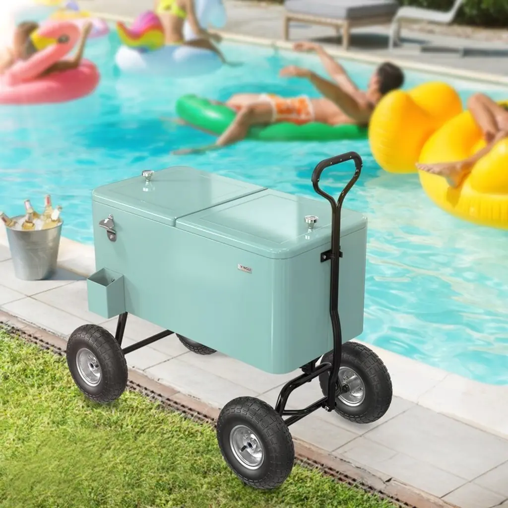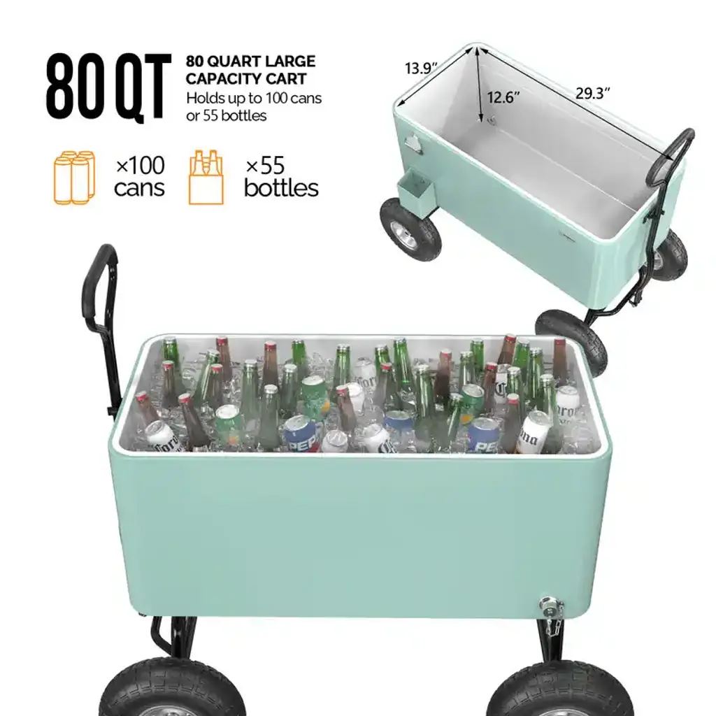 80 Quart Outdoor Wagon Rolling Cooler Ice Chest With Handle And 10" Wheels - Green