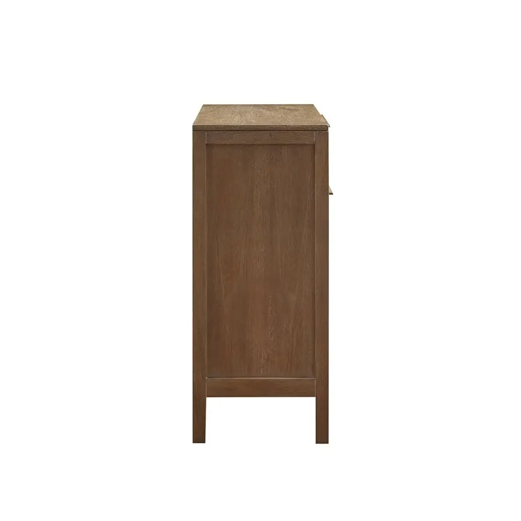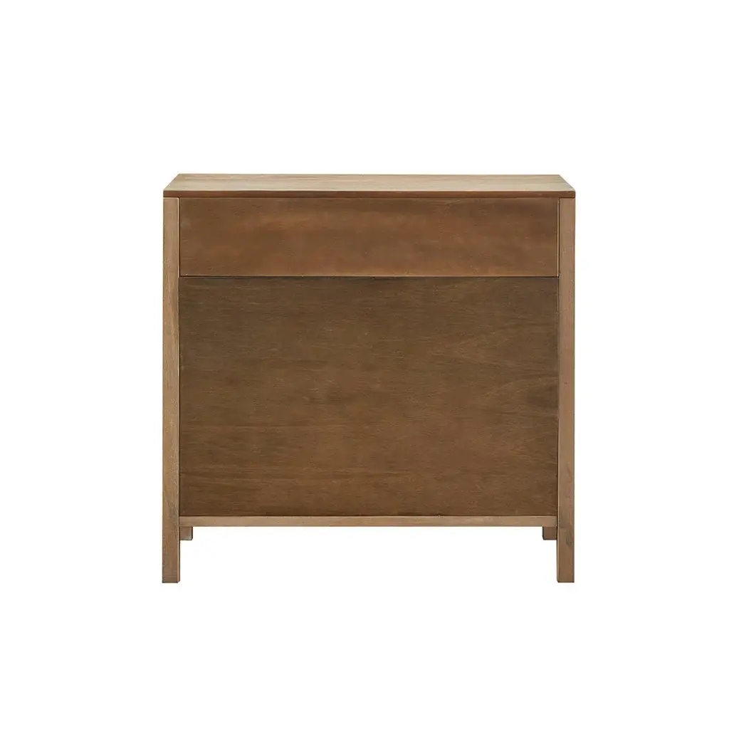 Showcase your space with this elegant chest, featuring two doors adorned with sophisticated cane webbing on the front panels. The hidden door locking mechanisms provide added security, ensuring your items are stored safely. A large top drawer with a metal-on-metal glide feature enhances accessibility, making it easy to organize your belongings. This cabinet combines style and functionality, making it a perfect addition to any modern home.