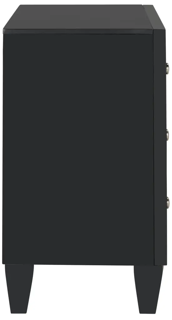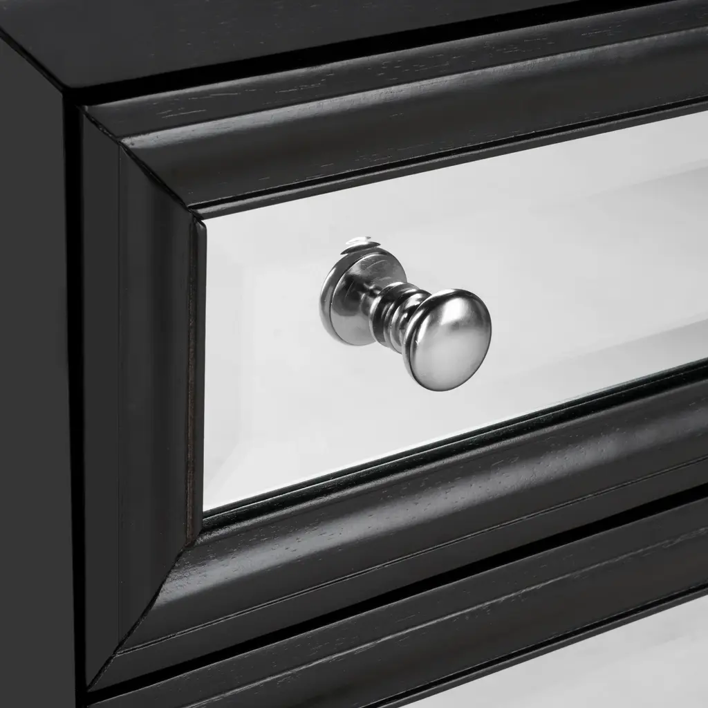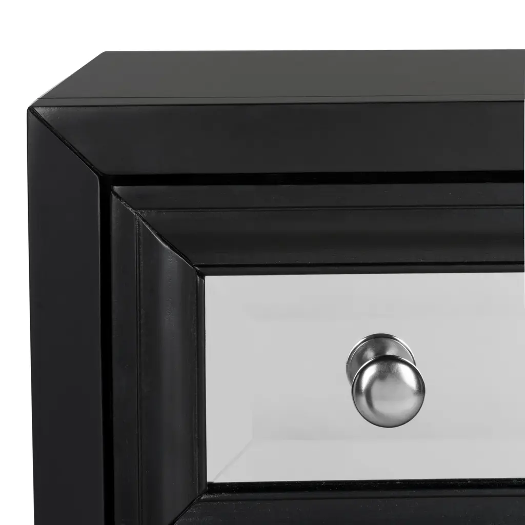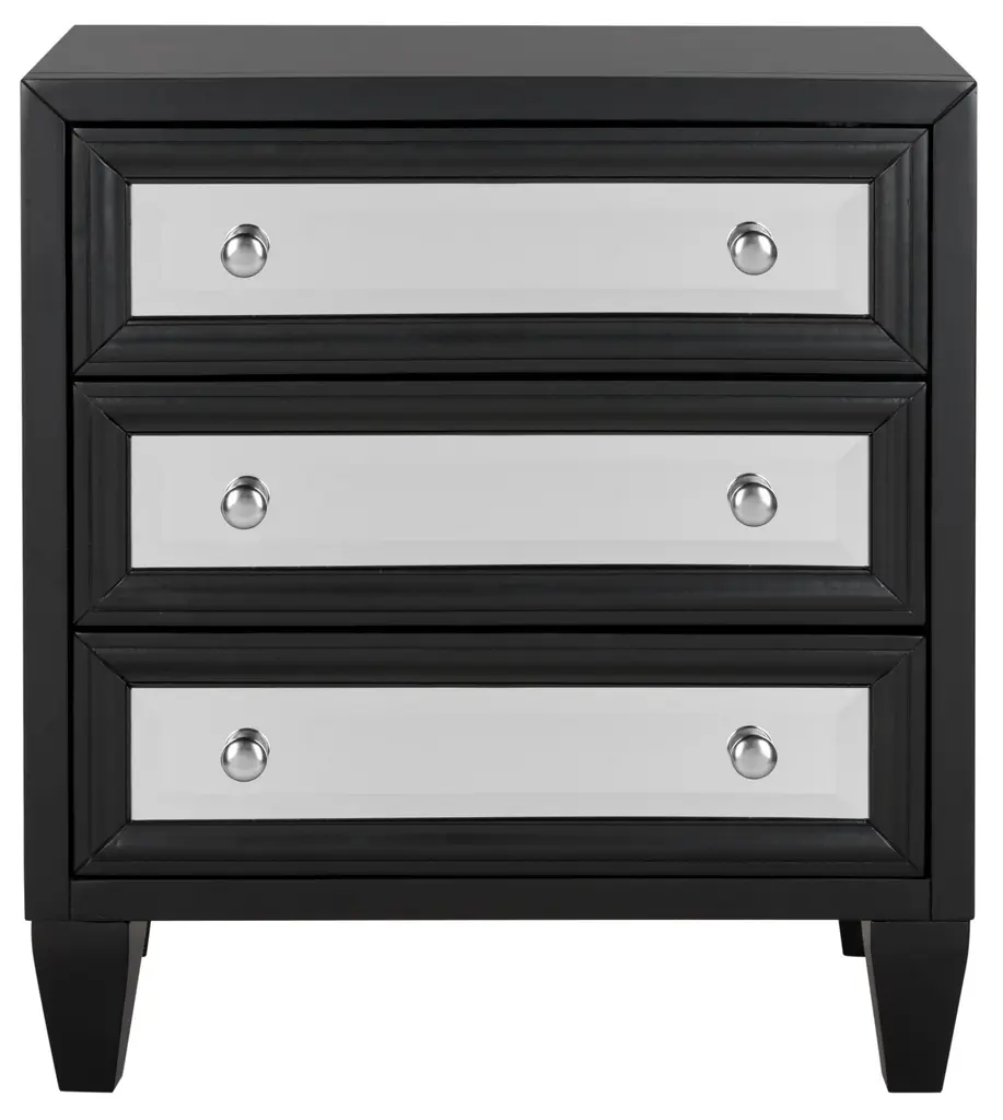 This 3-drawer chest is effortlessly chic. Designed with style and luxury, it's classic black finish and mirrored panels complement any living room. Beloved for it's discreet, ample storage, designers often use in pairs. Dust regularly with a soft, dry cloth. Never use oiled or treated cloths on lacquered finishes. Some finishes can be wiped with a damp (not wet) cloth, followed at once by rubbing with a dry cloth to remove fingerprints and smudges. For persistent spots, gently clean with a soft cloth and a solution of water and mild soap, make sure to wipe dry. Use adhesive felt pads, coasters and placemats to protect your furniture. Some assembly required.