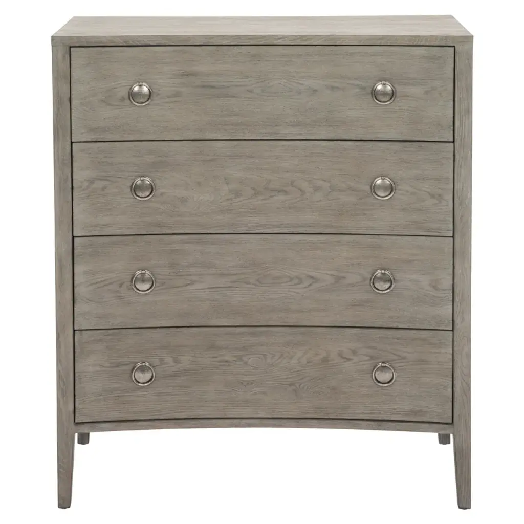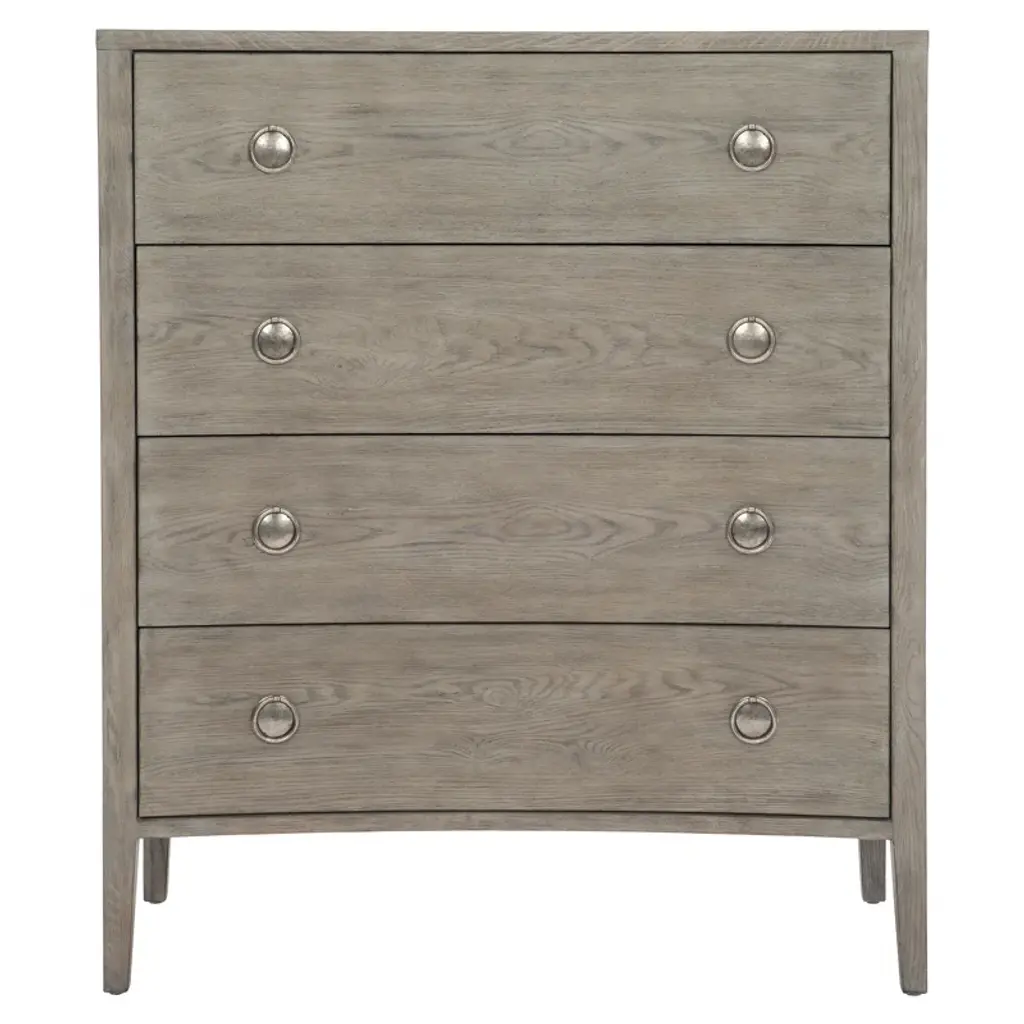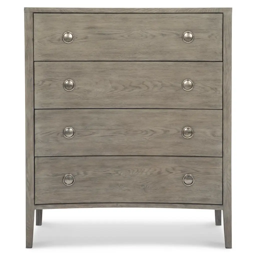 Standing just over four feet, the Albion tall drawer chest offers the look of a bygone era. Straight lines give way to a concave curve along the front, where four soft-closing drawers offer sleek storage. Casual sophistication is showcased in brushed white oak with a subtle rustic finish, tapered legs, and simple, elegant hardware.