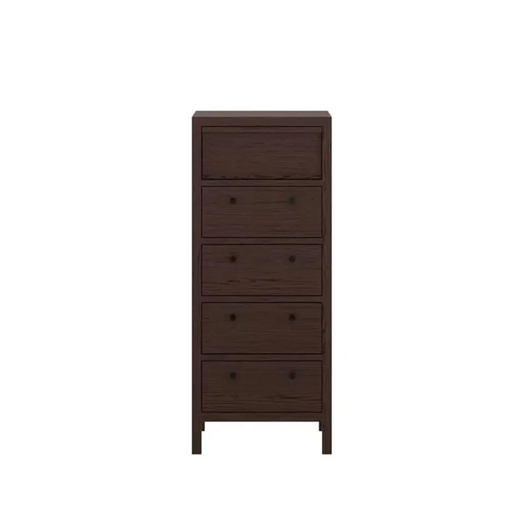 The Aldus 5 drawer chest is an elegant and versatile storage piece made of Solid Elm wood; it is handcrafted so precisely that no nails or screws are needed. The tall, linear form is both beautifully sophisticated and offers maximum utility for minimal floor space. The sleek simplicity and classic lines of this piece makes it a timeless addition to any home.