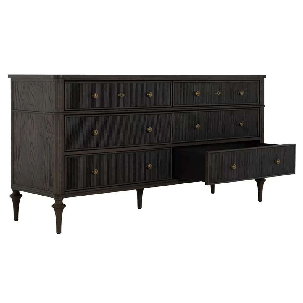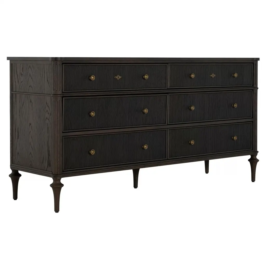 Andrea French Country Dark Brown Oak Wood Double Dresser