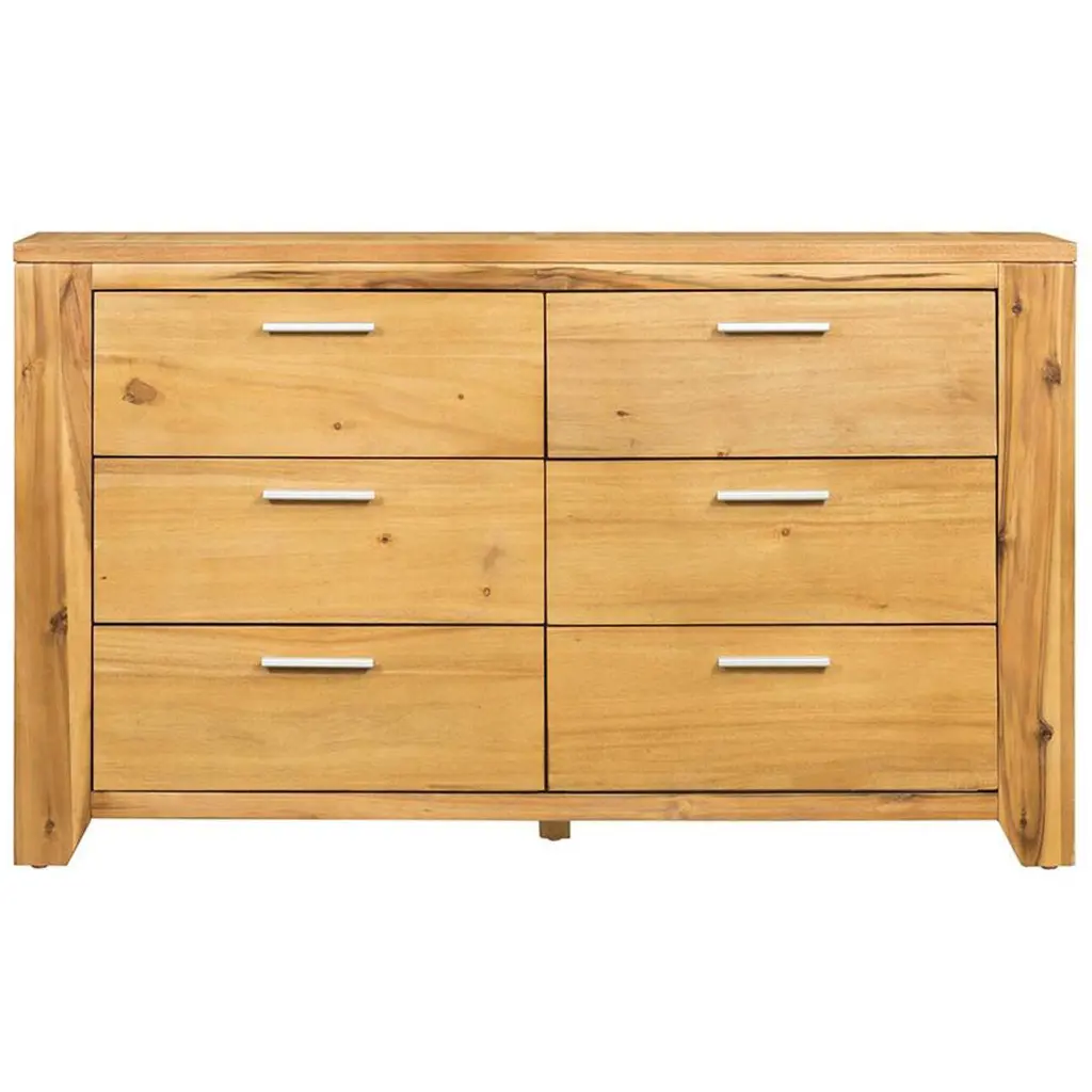Rethink how cute and chic home storage could be with the 6-Drawer Dresser. Made from strong acacia wood with a rich natural finish, this dresser can fit within virtually any design scheme. Thanks to the six drawer design, this dresser can serve as a reliable storage option for clothes, blankets, toys and so much more.