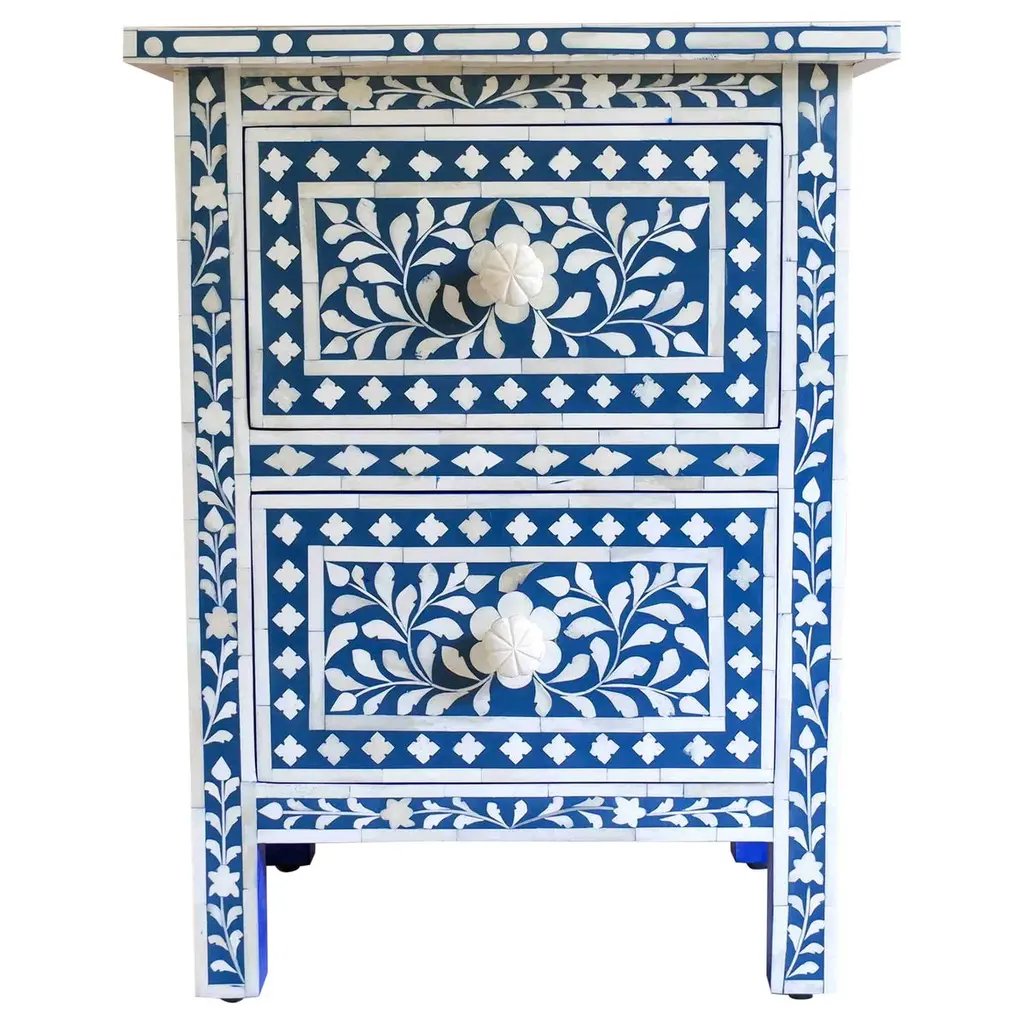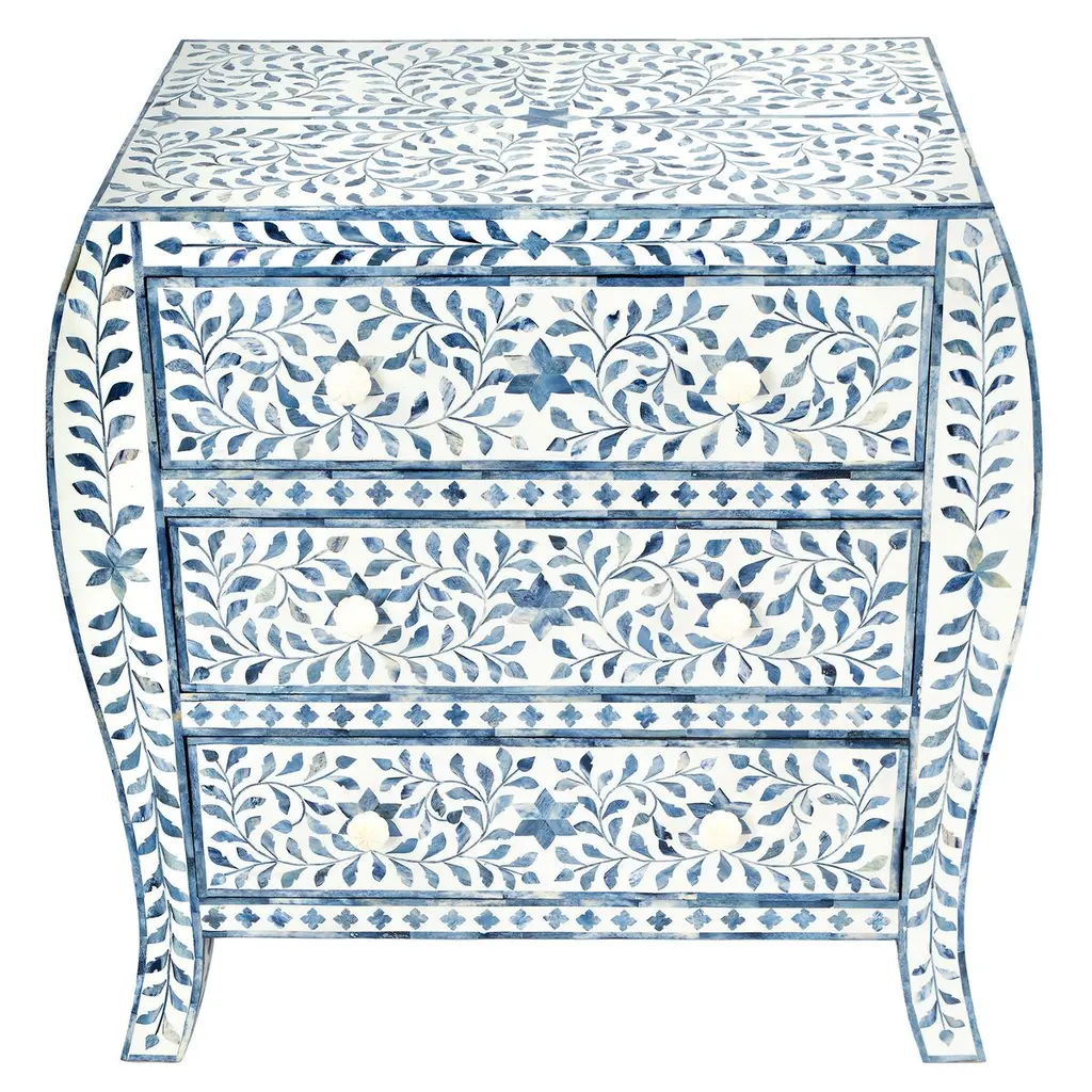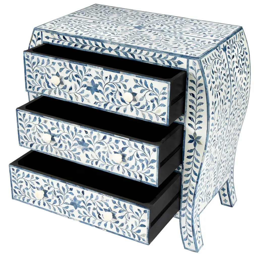 Ariella Bone Inlay 3-drawer Chest, Blue/white
