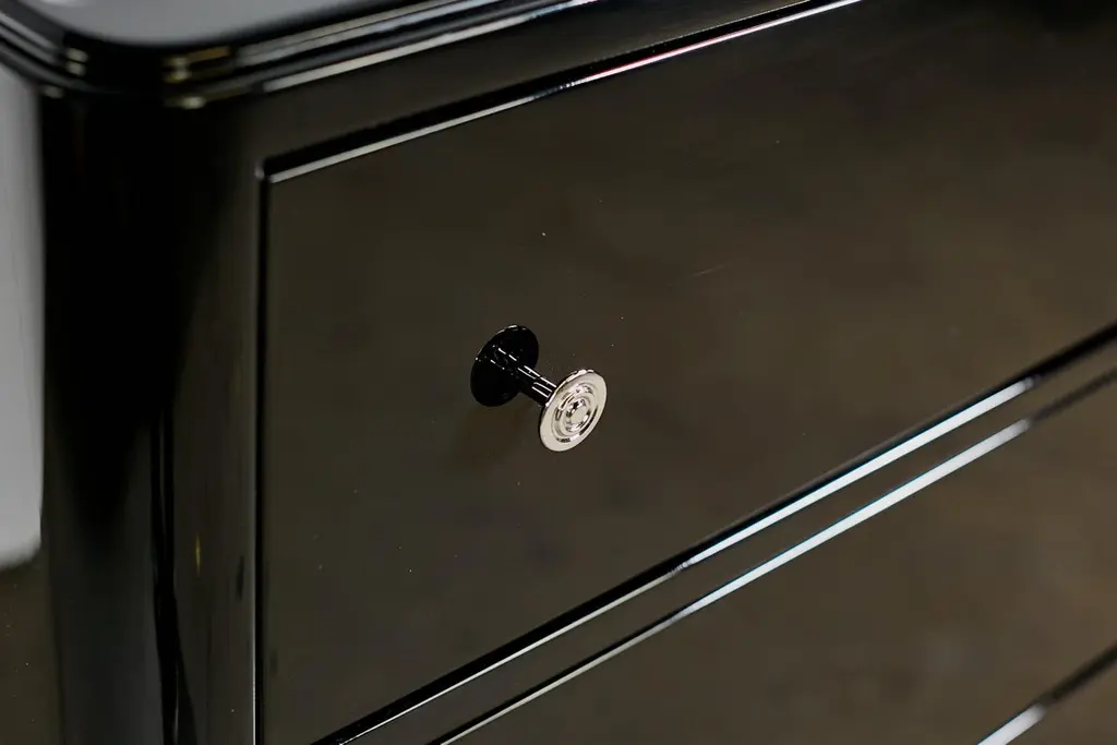 Art Deco Chest Of Drawers With Beautiful Black Piano Lacquer And Timeless Handle