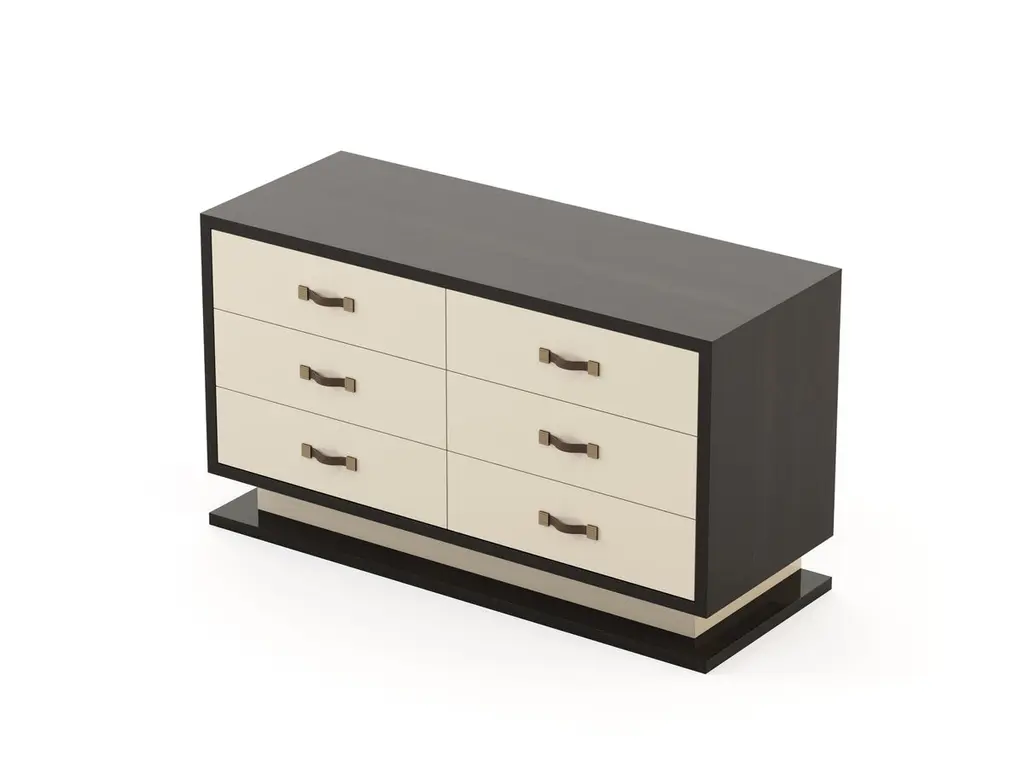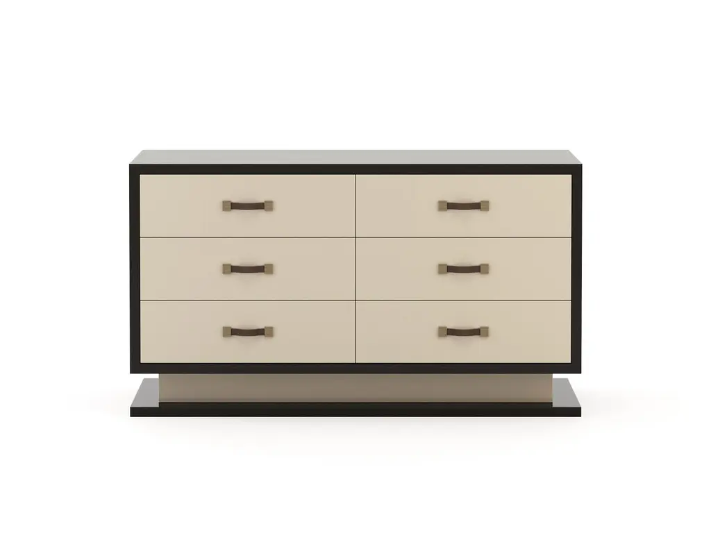 The Sublime collection is influenced by Art Deco, born under the burst of bright colors and shades, mirroring the elegance and glamour of the 1920’s and aiming to be the inspiration of life. This collection is characterized by the use of brass, a noble and sophisticated material, and the lacquered surfaces, which provide the piece with the representative shine of Art Deco. Pieces with voluptuous lines, but nevertheless comfortable and cozy, are what define Art Deco, as well as our collection.With a classically inspired contemporary design, the Sublime chest of drawers combines functionality with sober design. A remarkable reinterpretation of charm and elegance, this piece transfers sophistication to your bedroom. Iconic in the brand's luxury product range, this piece has changed according to trends. Now developed in wood with natural leather handles, it is customised in size and material. The Sublime collection is influenced by Art Deco, born under the burst of bright colors and shades, mirroring the elegance and glamour of the 1920's and aiming to be the inspiration of life.As the product can be personalised, the image of the presentation is merely illustrative.