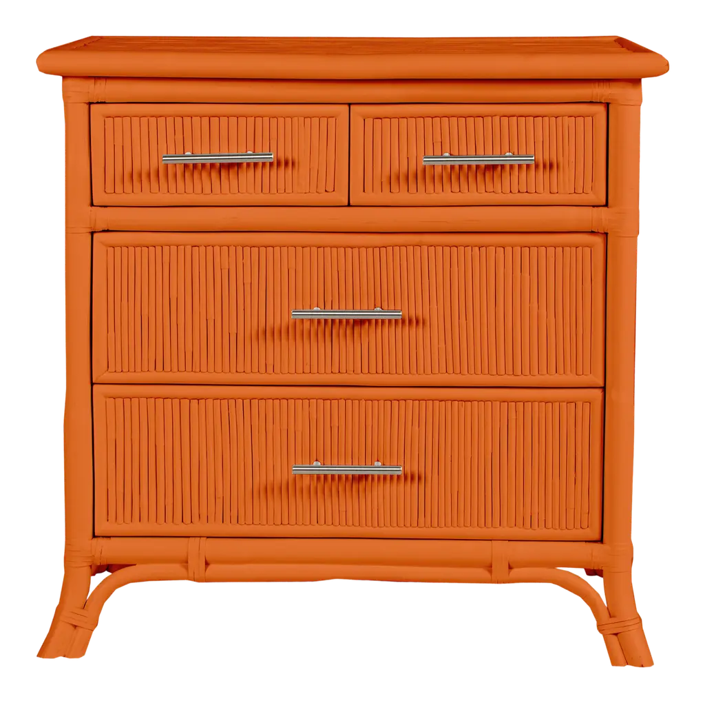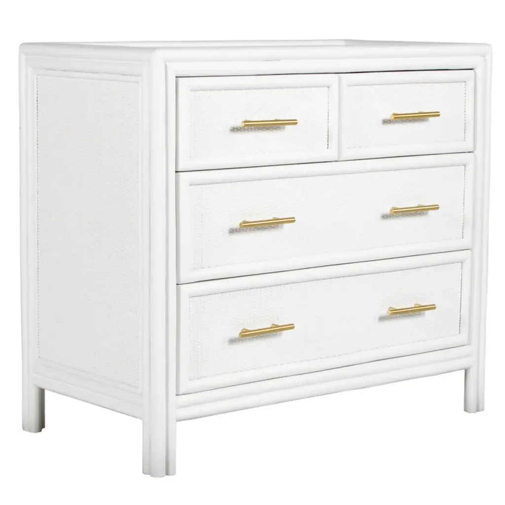 Versatile and highly functional, the Aruba Four-Drawer Chest captures the carefree elegance of the coast. Featuring a Pencil Rattan top, sides and drawer facings the Aruba Chest promises to compliment any space. The four-drawers feature wooden drawer glides and metal drawer pulls. The four-drawer chest offer plenty of storage and the spacious top provides a space for decorative accessories or framed photos. Each David Francis chest is hand-finished and made to order, please allow time for delivery.