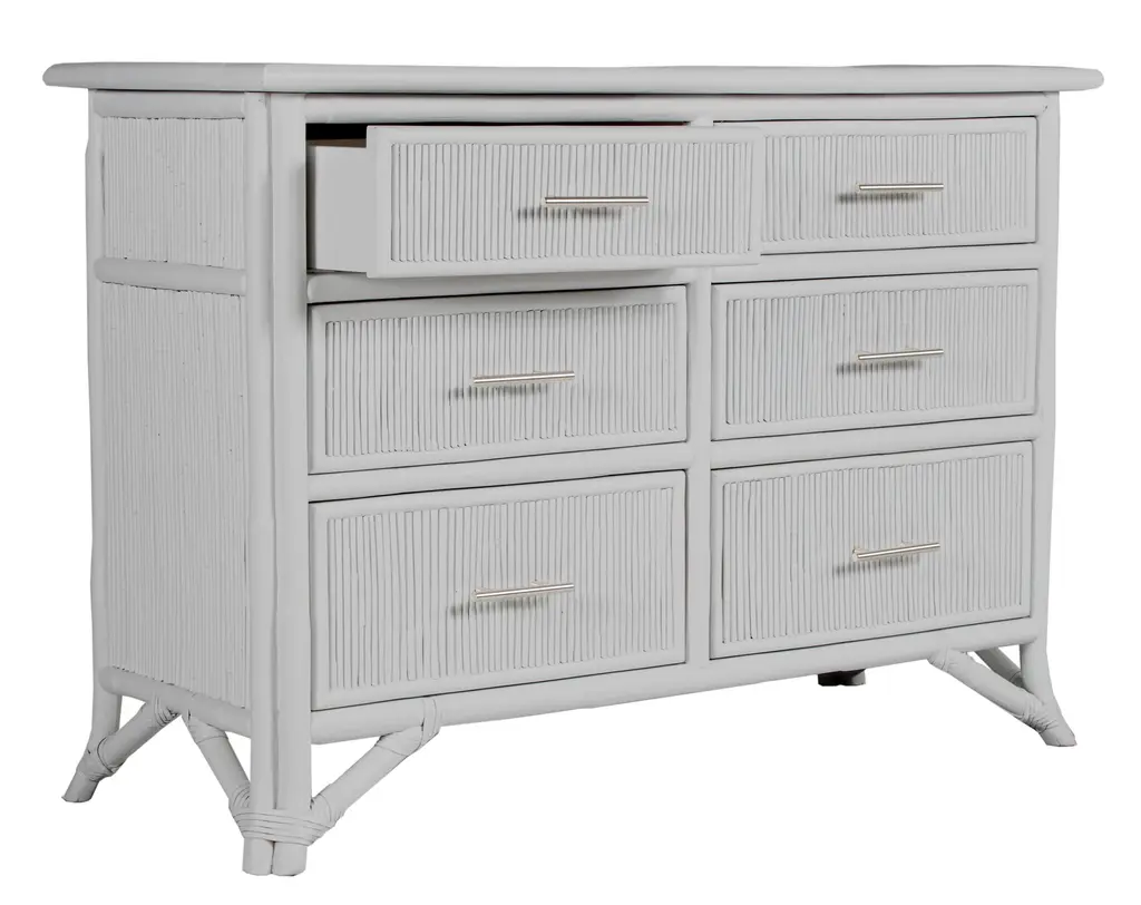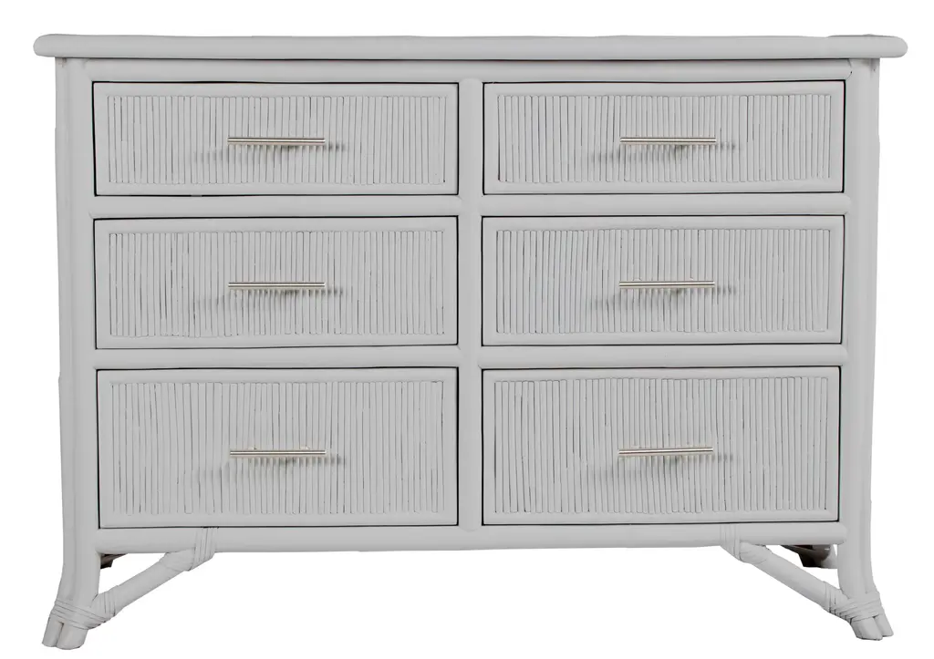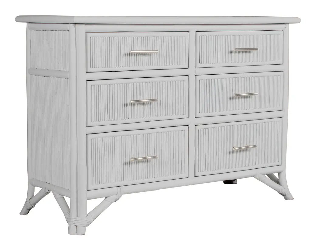 Versatile and highly functional, the Aruba Six-Drawer Dresser captures the carefree elegance of the coast. Featuring a Pencil Rattan top, sides and drawer facings the Aruba Dresser promises to compliment any space. The six-drawers feature wooden drawer glides and metal drawer pulls. The six-drawers offer plenty of storage, while the spacious top provides a space for decorative accessories or framed photos. Each David Francis dresser is hand-finished and made to order, please allow time for delivery.