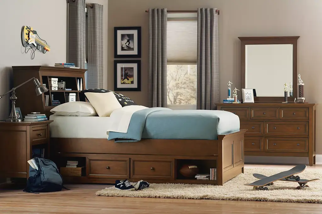 Our traditional Ashebrooke youth dresser will accommodate your child's taste for years to come. A multi-step brown finish and antique brass hardware play up the natural wood grain.