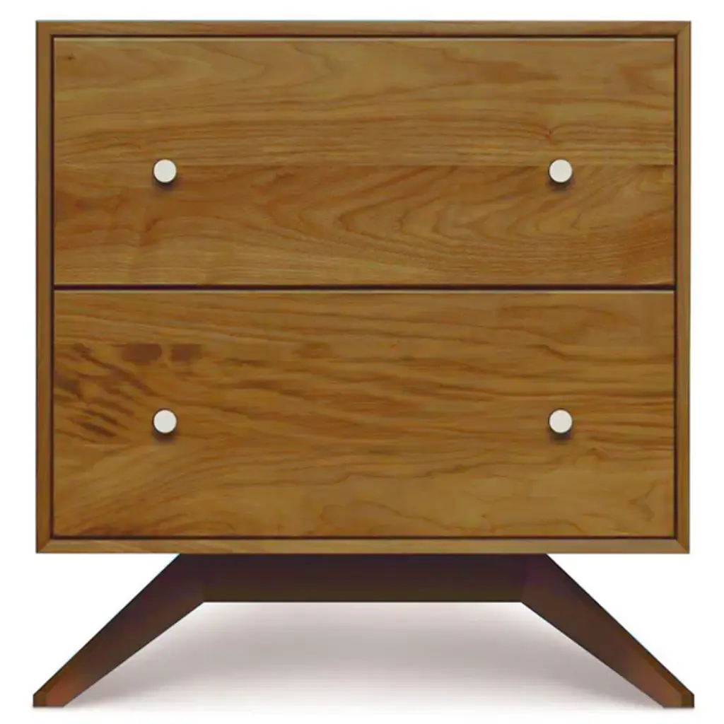 The Copeland Furniture Astrid 3 Drawer Dresser provides useful storage and style in bedrooms of all sizes. The improbably splayed legs give the otherwise austere piece greater visual interest and a sense of dynamism. It is made entirely out of solid hardwood, and comes in a range of hand-applied finishes protected by a clear Greenguard certified lacquer top coat.