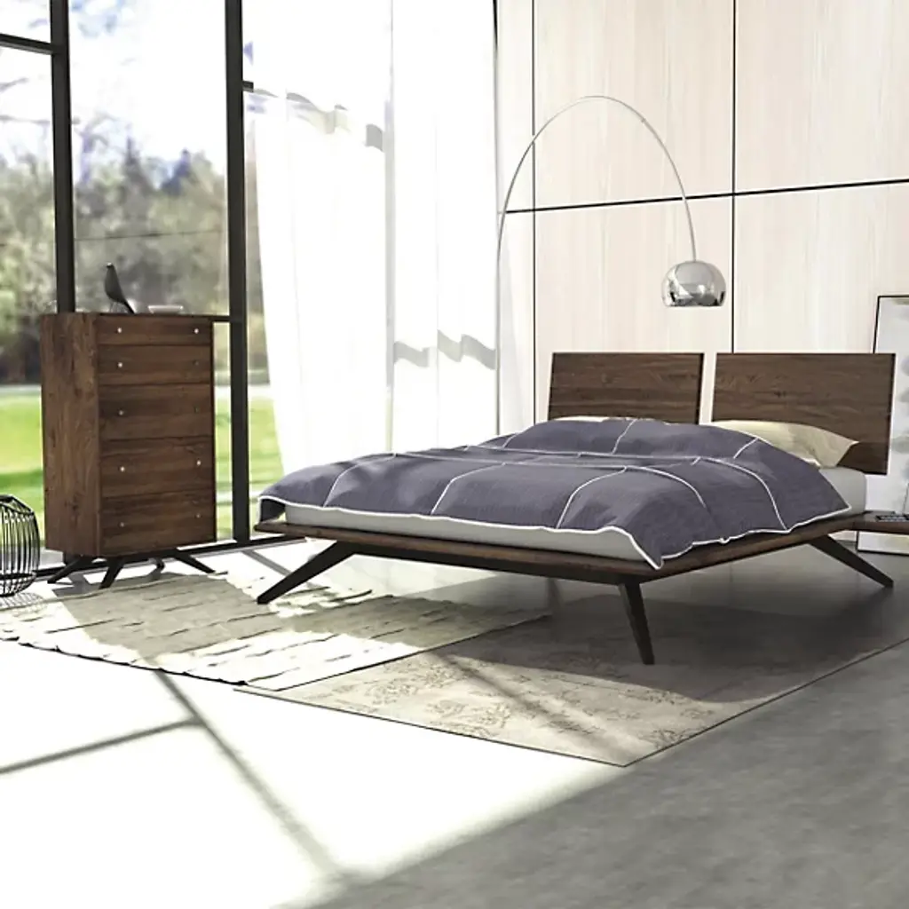 With its splayed legs giving it unexpected lightness and sense of style, the Copeland Furniture Astrid 5 Drawer Dresser also has ideal proportions for providing maximum storage in narrower spaces. The five drawers of this tower-style dresser are in gradated heights to accommodate clothing and other items of all sizes. It is made of solid wood and is available in a range of finishes.