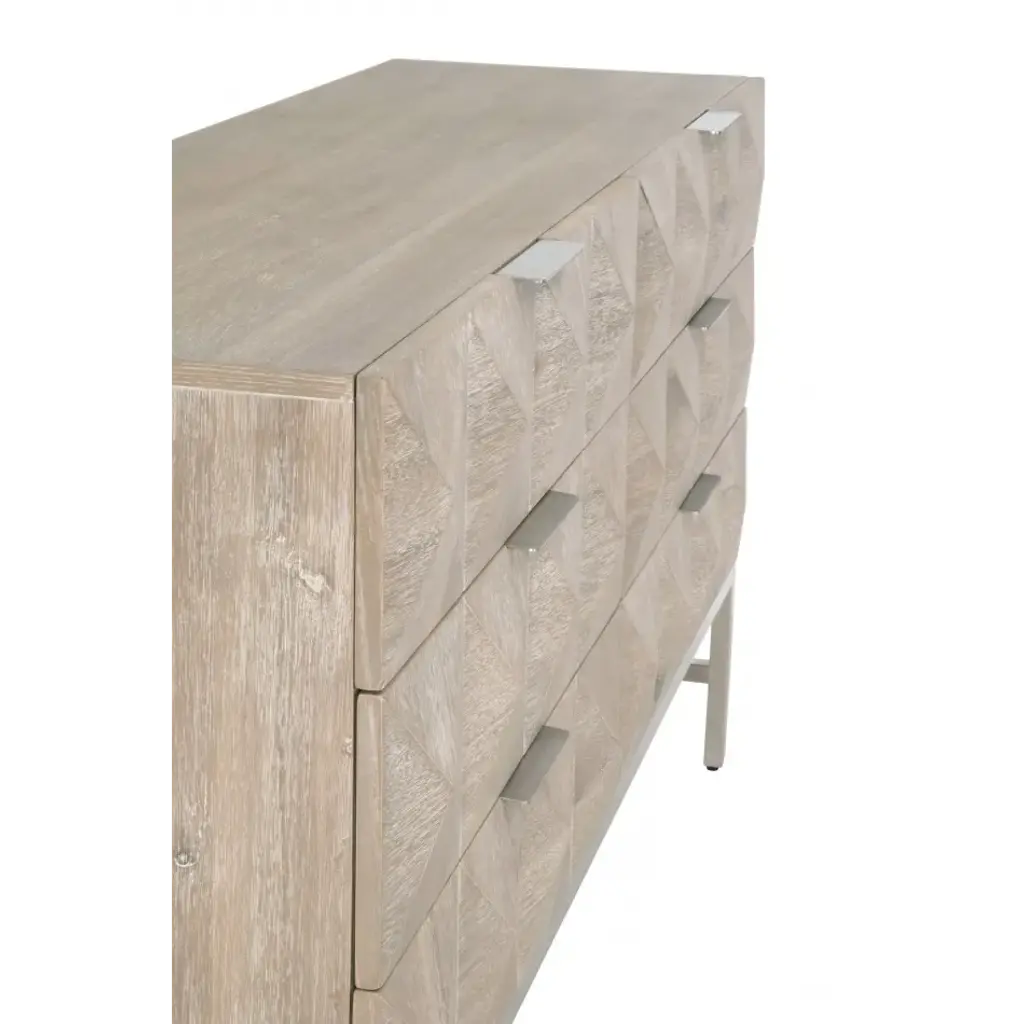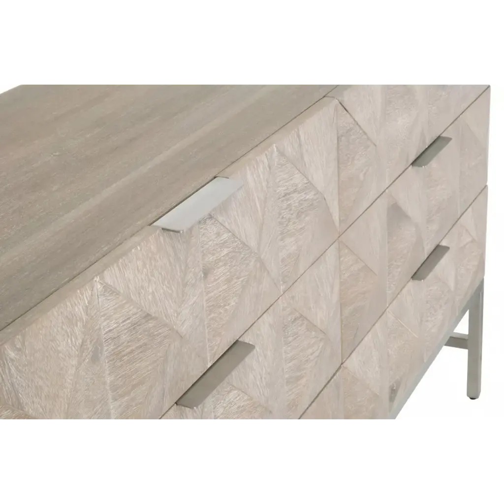 Atlas 6-Drawer Double Dresser Natural Gray Acacia, Brushed Stainless Steel