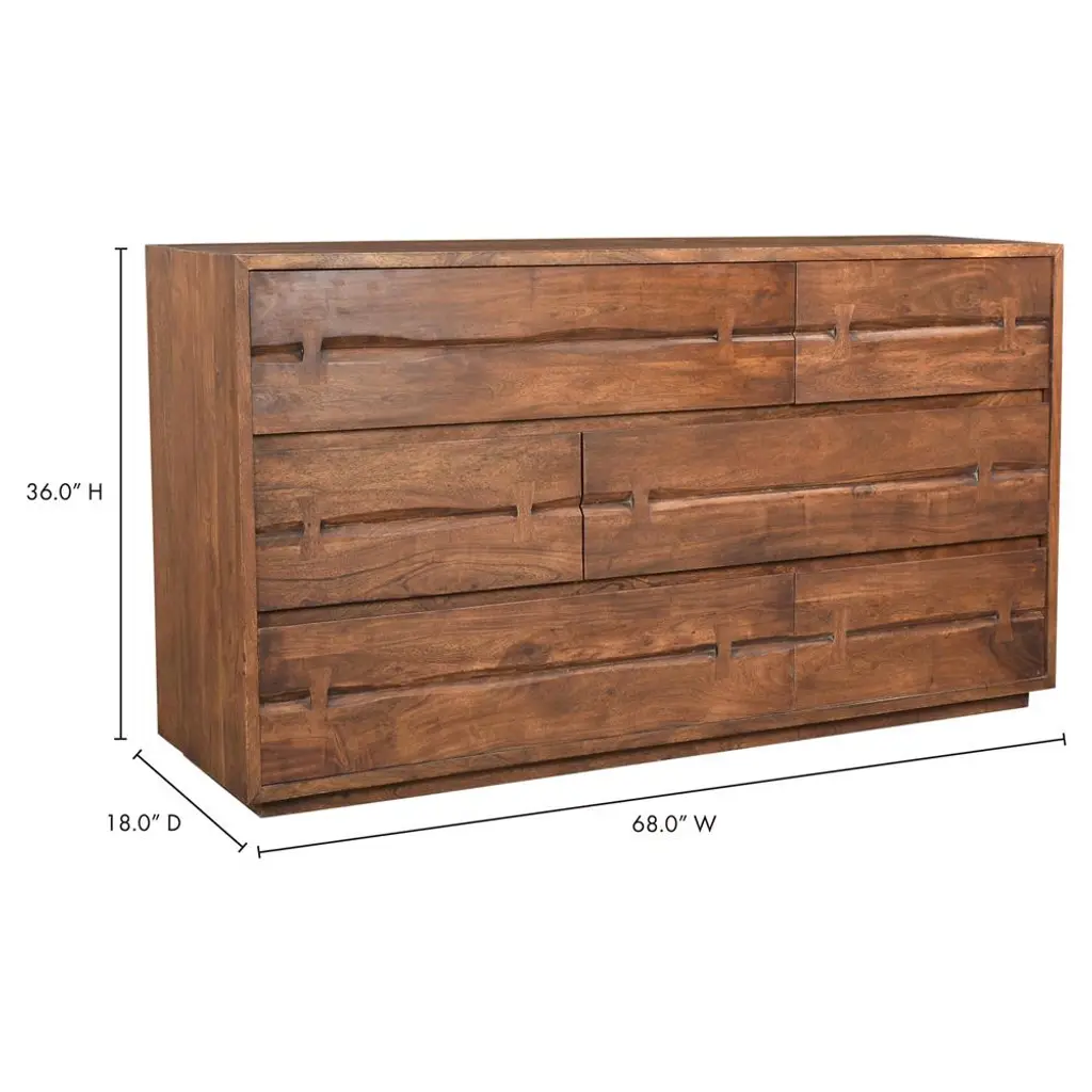 Atlas Rustic Lodge Brown Acacia Wood 6 Drawer Dresser