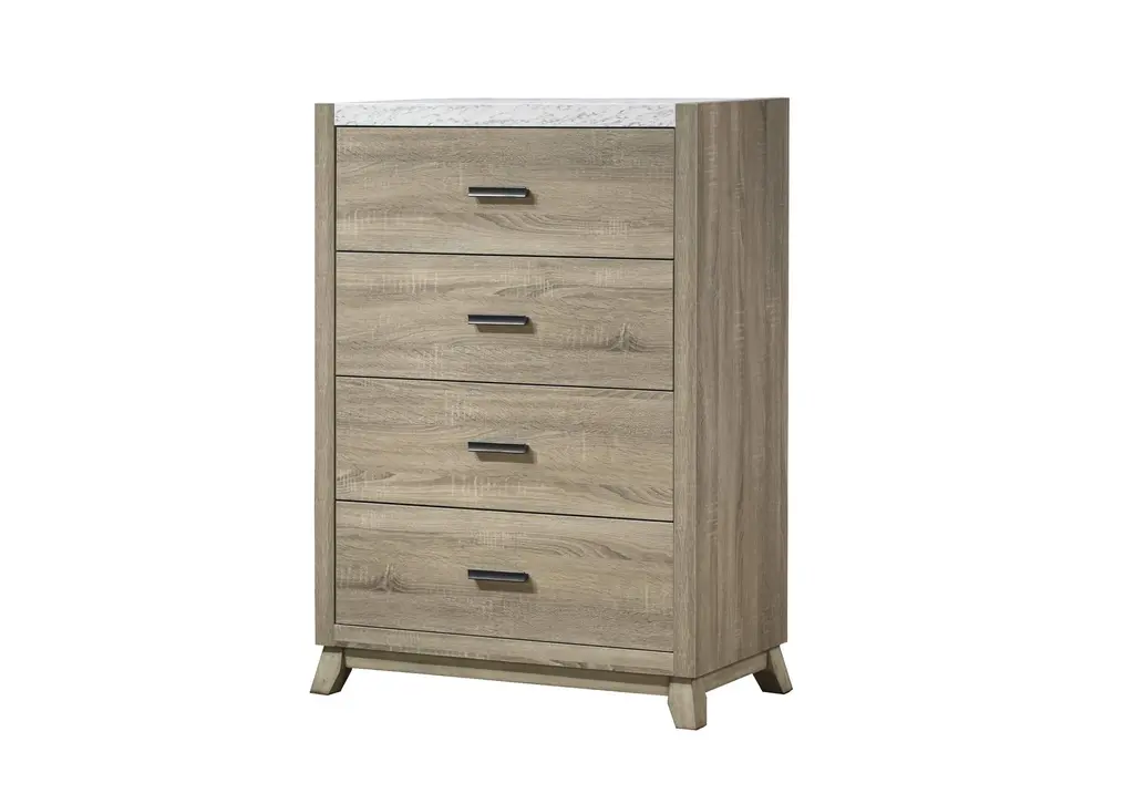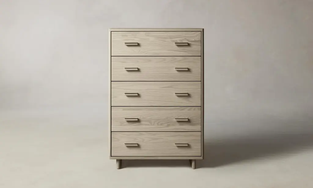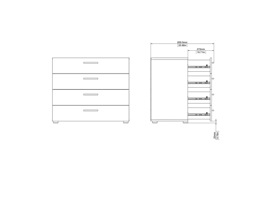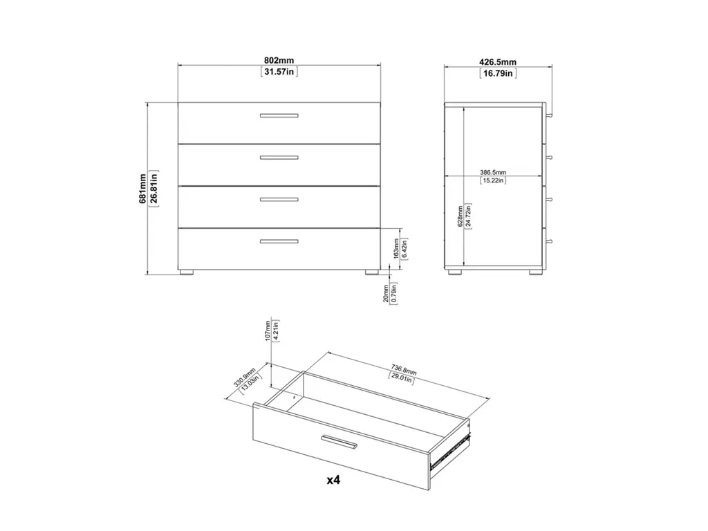 Slender and sleek. The Austin 4 Drawer Chest is a space saving alternative that can hold a variety of items in its wide drawers, from guest linens to daily entryway necessities. The unique depth makes this piece an ideal addition to bedrooms, living areas or entryways. Streamlined hardware and round feet give it a simple chic feel. Standing strong with metal drawer liners and an easy to clean foil surface, the Austin chest will be a productive and durable piece in your collection.