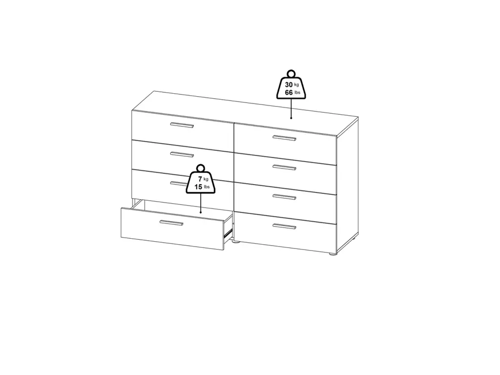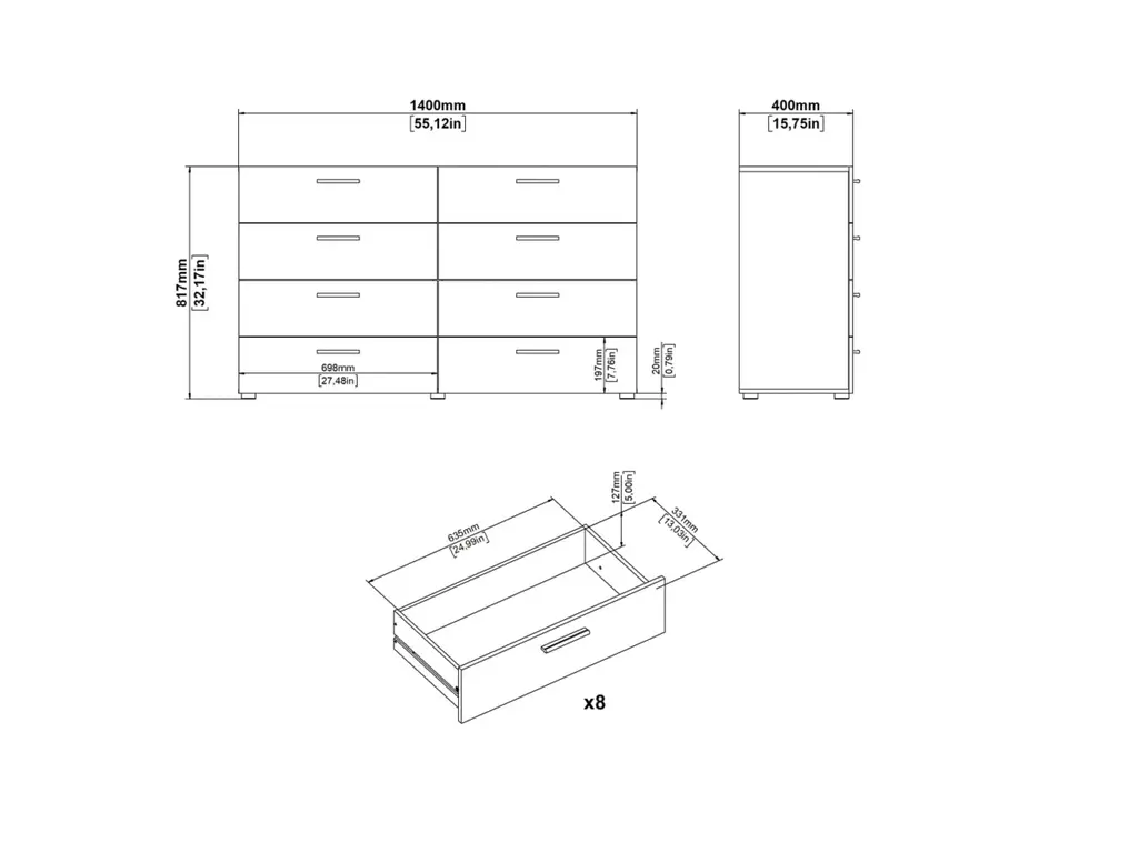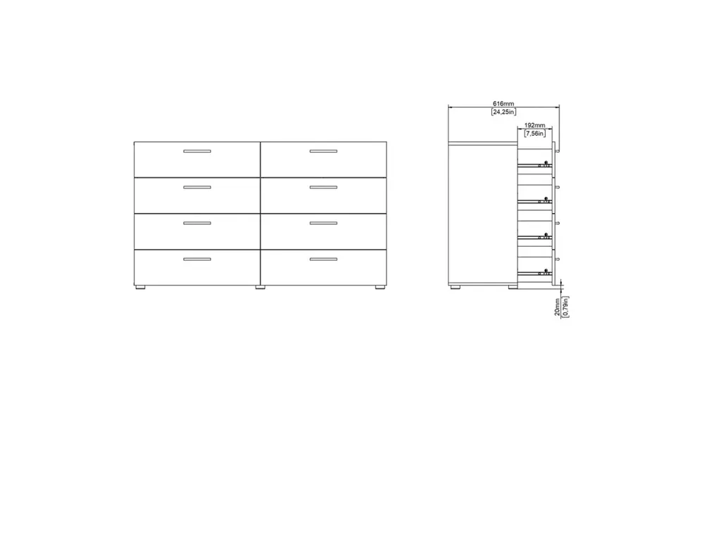 Keep it clean. The Austin eight-drawer double dresser organizes your clothes with a refined, restrained presence. Sweaters and linens find a happy home in the eight wide drawers, while the unique dresser depth makes the piece ideal for smaller spaces. Streamlined hardware and round feet give it a simply chic feel. Standing strong with an easy-to-clean foil surface, this piece is an essential.