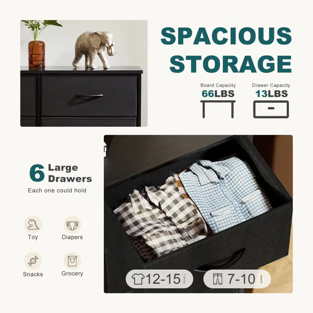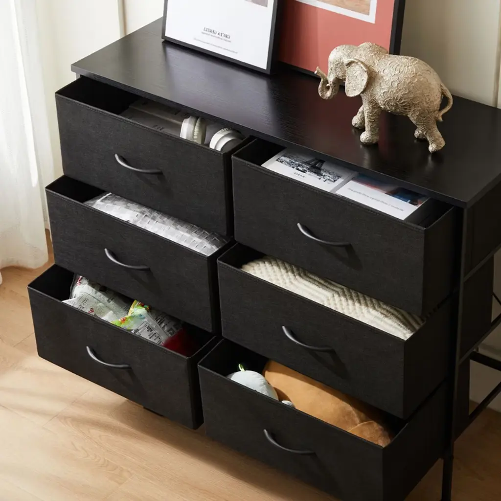 Elevate your home organization with this multifunctional dresser, designed to fit seamlessly into closets, nurseries, and entryways. It offers ample storage with a mix of large and medium drawers, keeping your space orderly and items accessible. The dresser is built to last with a durable design that is safe for kids and easy to clean. Assembly is a breeze with included tools and guidance, backed by responsive customer support.