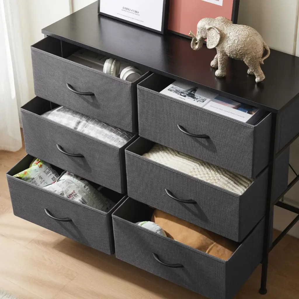Elevate your home organization with this multifunctional dresser, designed to fit seamlessly into closets, nurseries, and entryways. It offers ample storage with a mix of large and medium drawers, keeping your space orderly and items accessible. The dresser is built to last with a durable design that is safe for kids and easy to clean. Assembly is a breeze with included tools and guidance, backed by responsive customer support.