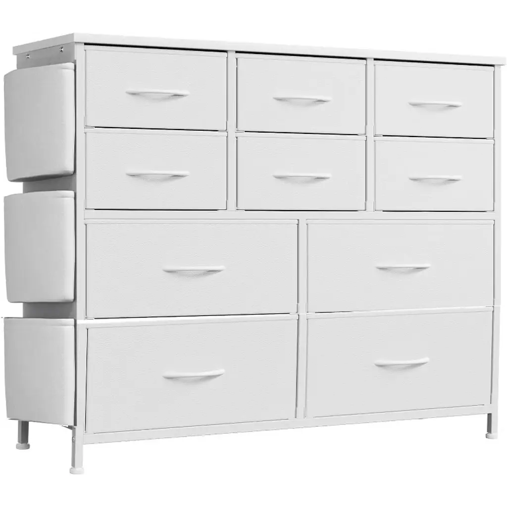 Elevate your home organization with this multifunctional dresser, designed to fit seamlessly into closets, nurseries, and entryways. It offers ample storage with a mix of large and medium drawers, keeping your space orderly and items accessible. The dresser is built to last with a durable design that is safe for kids and easy to clean. Assembly is a breeze with included tools and guidance, backed by responsive customer support.