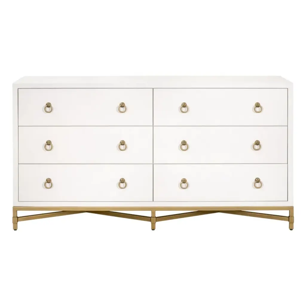 Azure Carrera 6-Drawer Double Dresser Dove Gray, White Carrera Marble, Brushed Gold