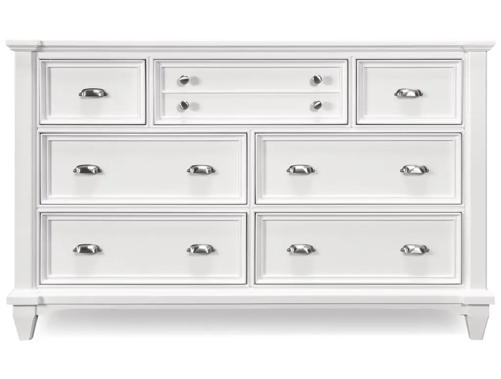 Add personality to your bedroom style and a feeling of coziness with this Baggeholm 8 Drawer Double Dresser. This horizontal double dresser has column style drawers and a wide top surface area to help you with your daily dressing essentials. Loaded with capacity, this piece is equipped with eight easy open drawers for practical and good looking clothing storage. This dresser is built to last from high quality solid wood, The white coloration of this piece is neutral and will blend easily with most any decor.