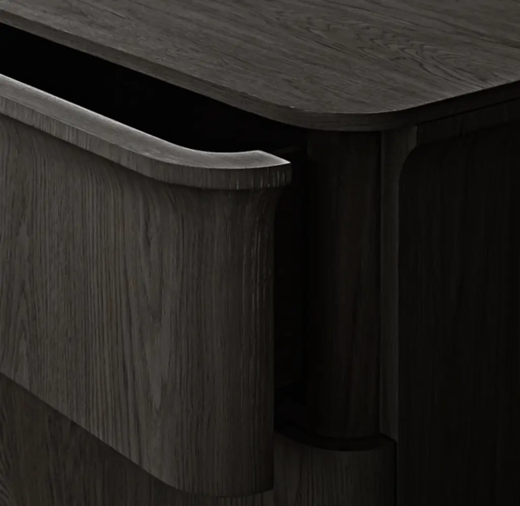 A modern take on classical architecture, Baron, by Milan-based designer Arthur Gentil, is defined by flared contours that recall the columns of ancient Rome and Greece. Handcrafted of beautifully grained European white oak, its surfaces are wire brushed by artisans to enhance the wood's natural texture. Sleek hardware continues the drawers' clean lines and adds a subtle shine. SHOP THE ENTIRE COLLECTION