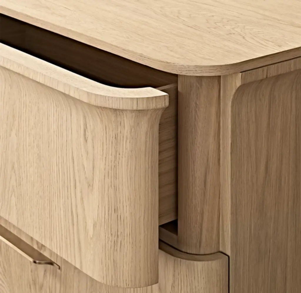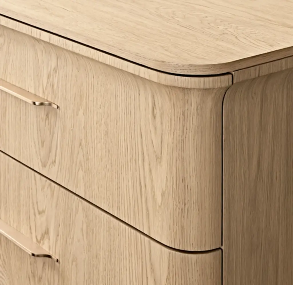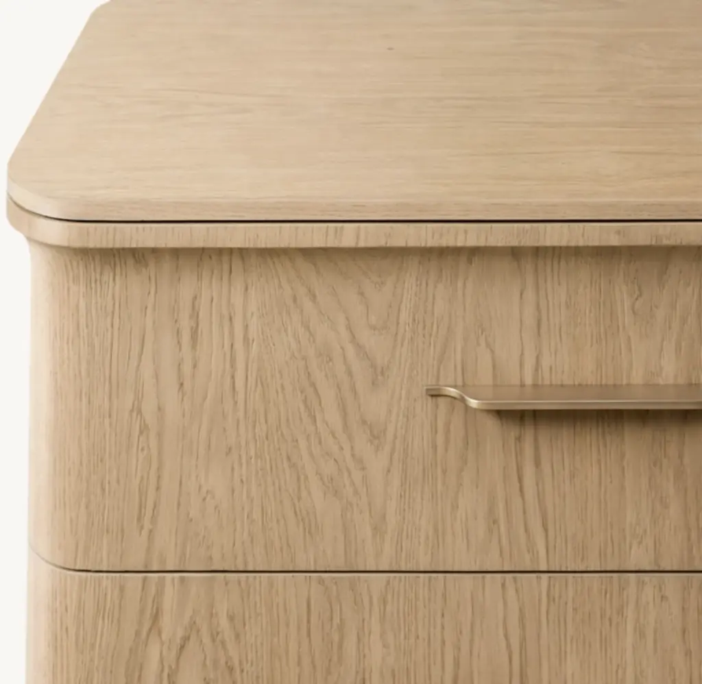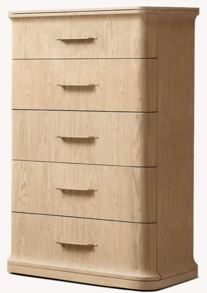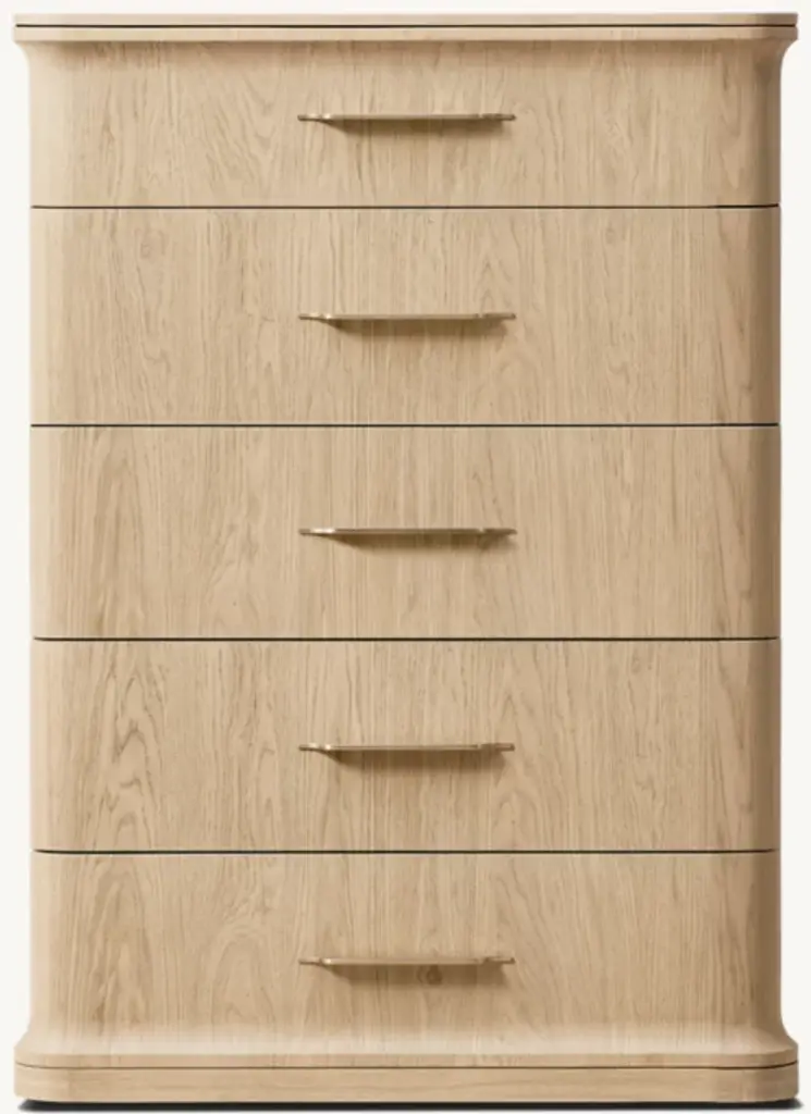 A modern take on classical architecture, Baron, by Milan-based designer Arthur Gentil, is defined by flared contours that recall the columns of ancient Rome and Greece. Handcrafted of beautifully grained European white oak, its surfaces are wire brushed by artisans to enhance the wood's natural texture. Sleek hardware continues the drawers' clean lines and adds a subtle shine. SHOP THE ENTIRE COLLECTION