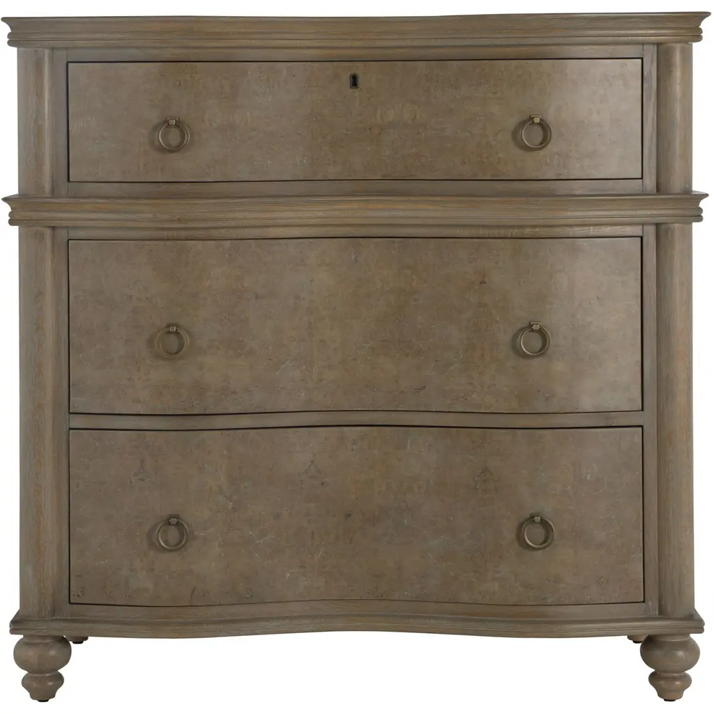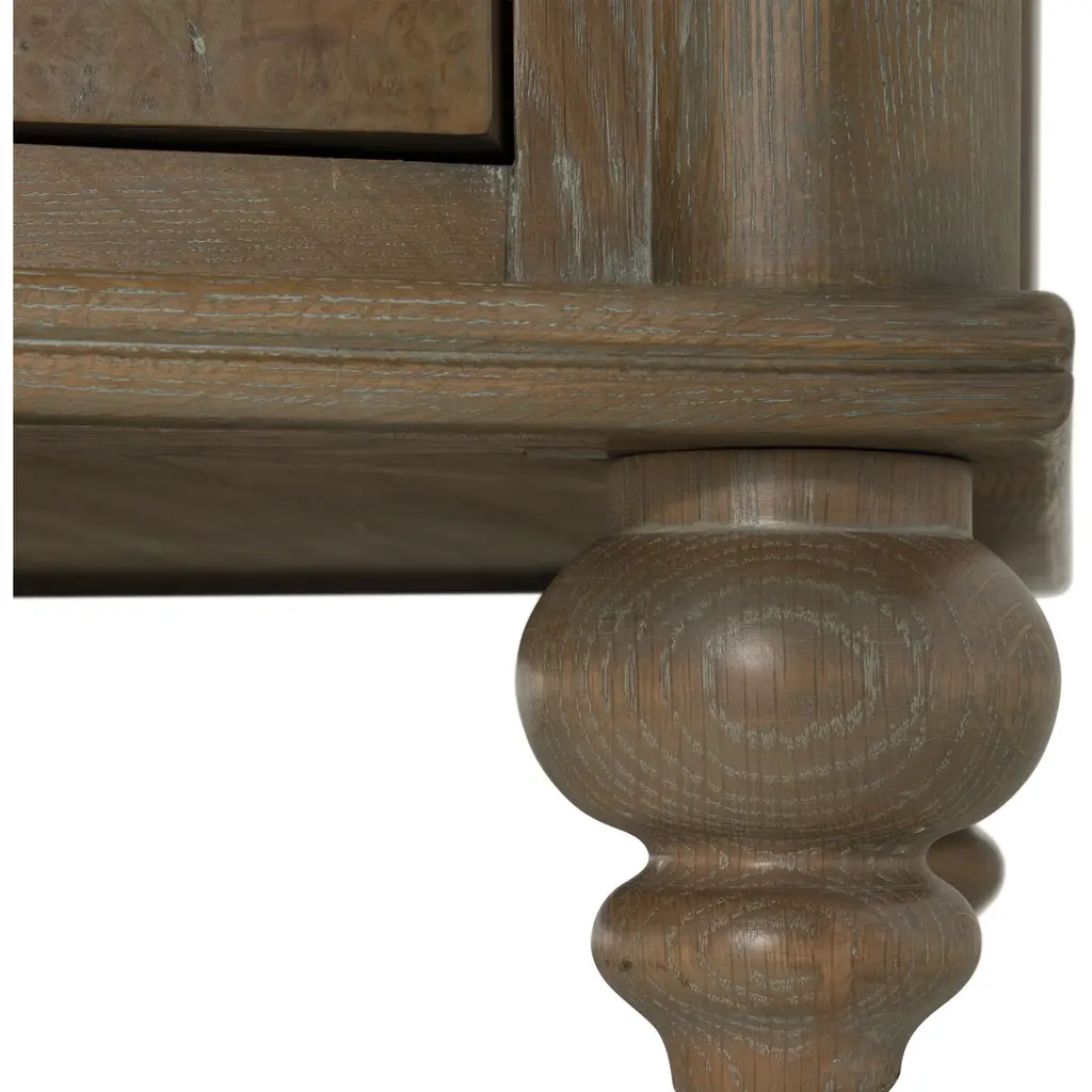 The Baron Chest brings an air of timeless elegance to any room with its refined cerused brown finish and classical design. Crafted from high-quality oak, oak burl, and oak veneer, this chest features three spacious drawers, offering sufficient storage for your belongings. The sophisticated design is highlighted by the gracefully curved drawer fronts and traditional ring pull handles. Perfect for a bedroom or living space, the Baron Chest combines functionality with classic style, making it a versatile and stylish addition to your home decor. This product uses natural or handmade materials, so variations in color and pattern are to be expected and celebrated.