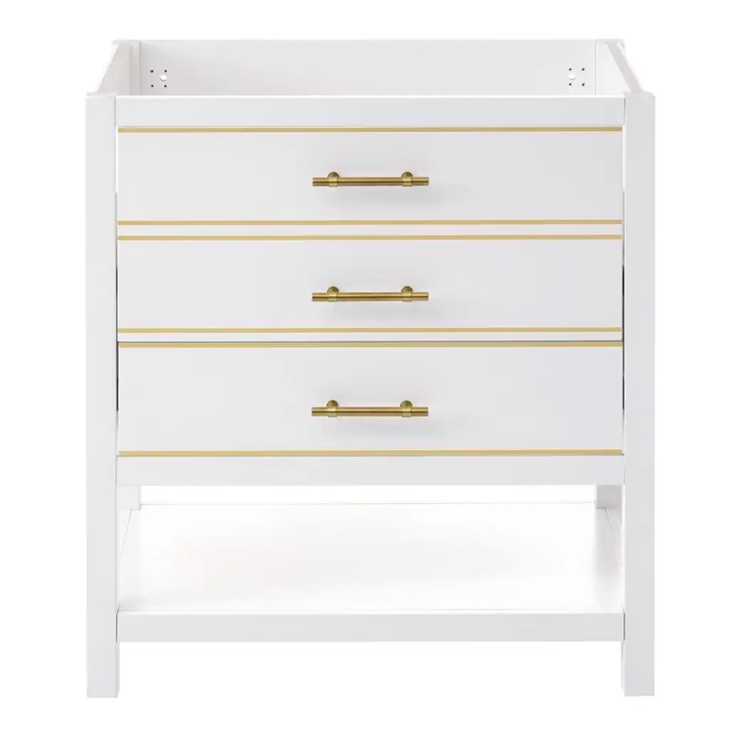 Bathroom Vanities Cabinet With Drawers, Bathroom Storage Cabinet, 3 Chest Of Drawers With Gold Handles, Drawer Dresser, Sink Not Included, White