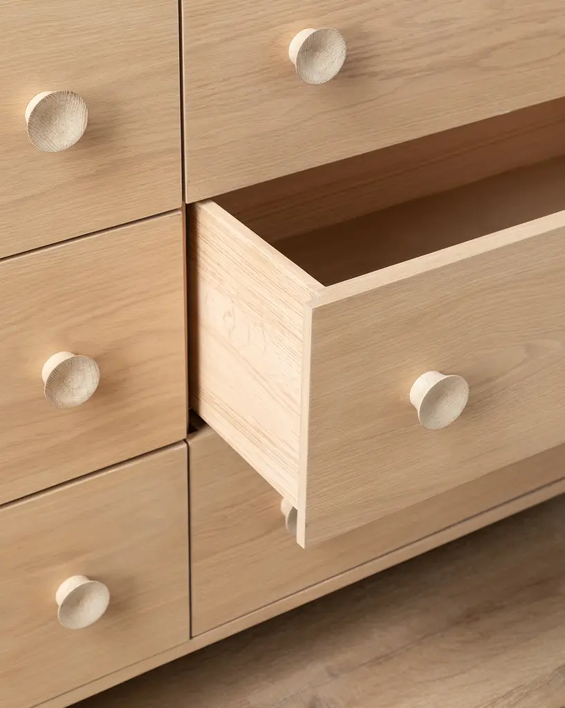Our Baxter Dresser brings the elegance and detail of classic oak bedroom furniture to your home with a transitional design. With oversized round pulls on its six drawers, details are truly what makes this piece special. Designed with simplicity, enjoy the beauty of oak bedroom furniture with an approachable feel.