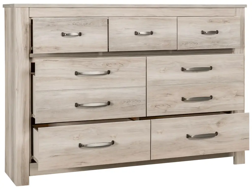 The Bellaby 7-drawer dresser features traditional styling with a clean-lined farmhouse profile. The fresh whitewash finish is sure to brighten up your bedroom, and the top is spacious enough to display essentials as well as decorative items. Its smooth-gliding drawers offer lots of storage space for your everyday needs. The seven drawers are accented with beautiful brushed nickel hardware edged in black.