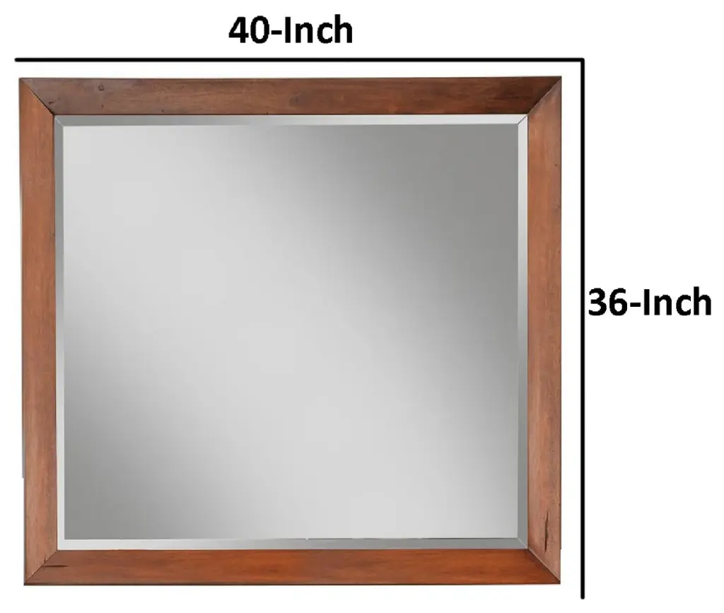 Benzara Bm284273 Rue 36x40 Dresser Mirror, Mahogany Wood Frame, Warm Brown