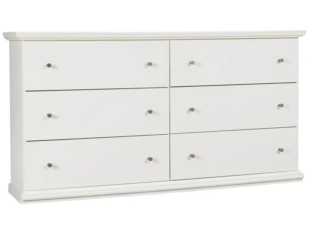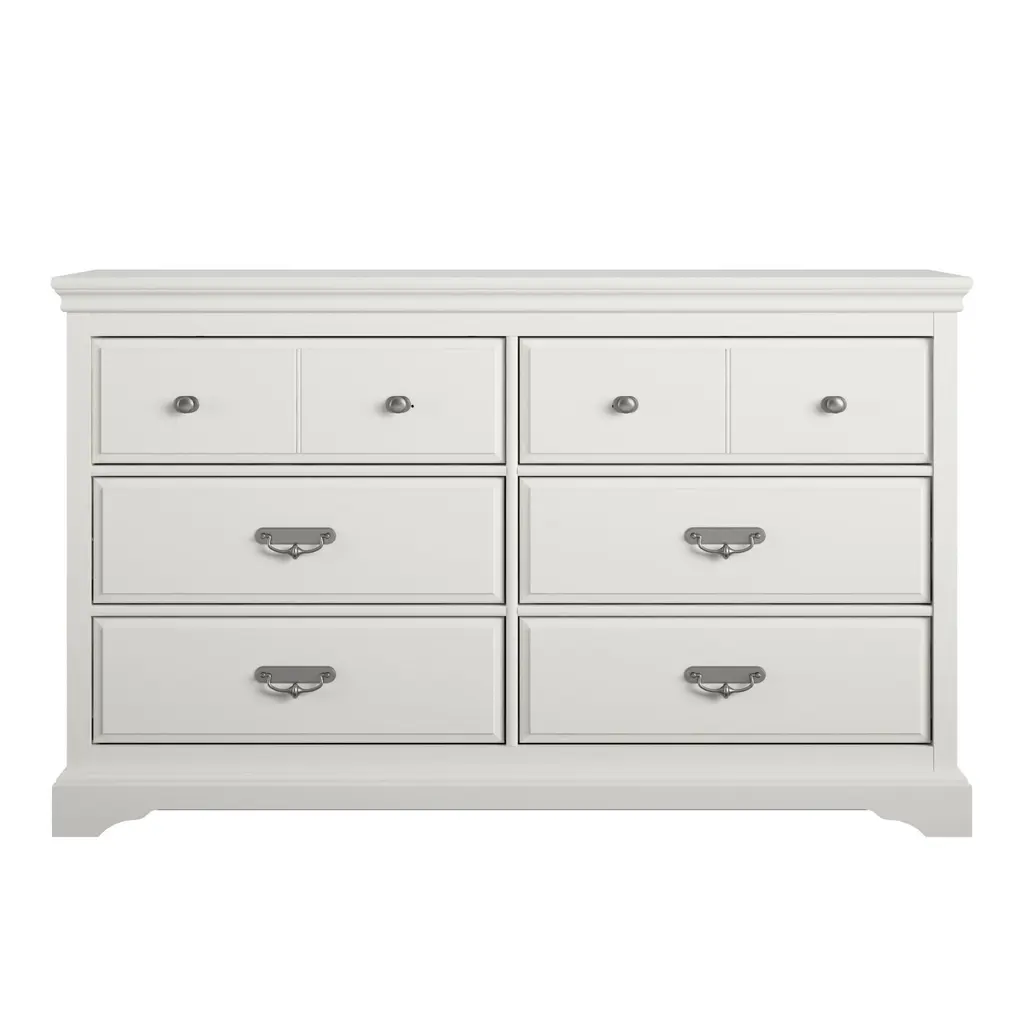 This super-chic, value-priced bedroom collection is worth its weight in gold. Featuring a sleek modern look, dressed in fresh white, it will be a sunny addition to any home. The 6-drawer dresser keeps clothes in their place.
