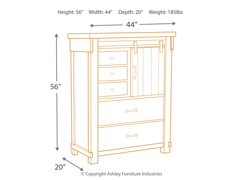 Brashland 5 Drawer Chest Of Drawers With Sliding Door