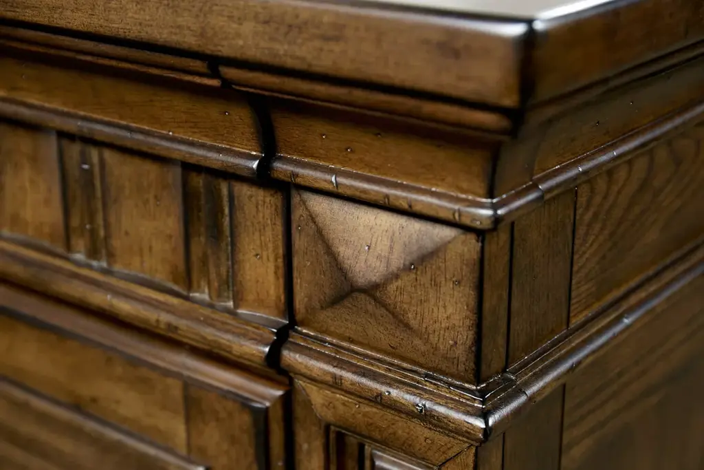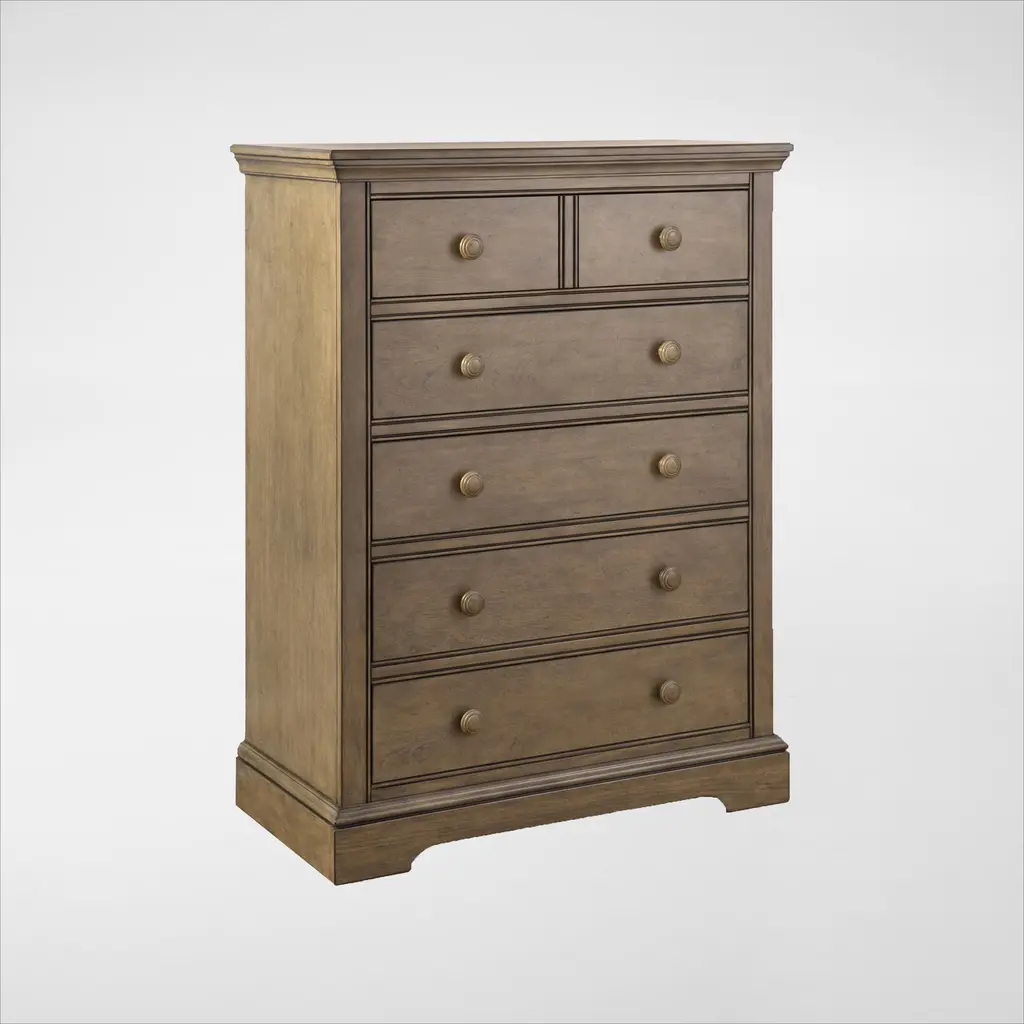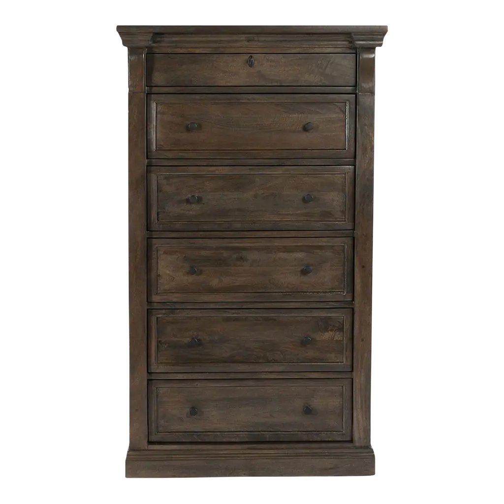 Complete your bedroom suite with the stylish storage of our Breckenridge chest. Six dust-proofed drawers with English dovetailing provide ample space for your essentials, while a distressed brown finish gives your space a warm, welcoming hue.