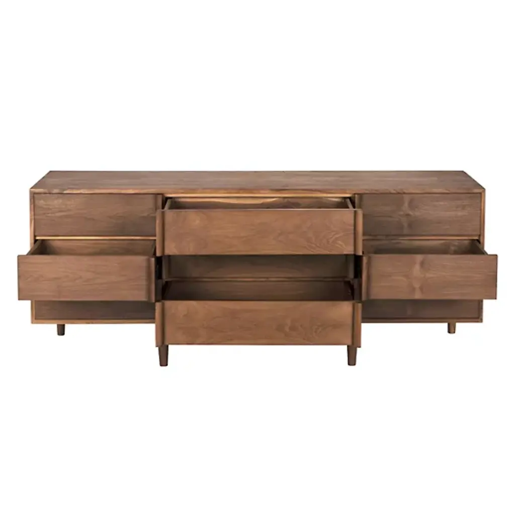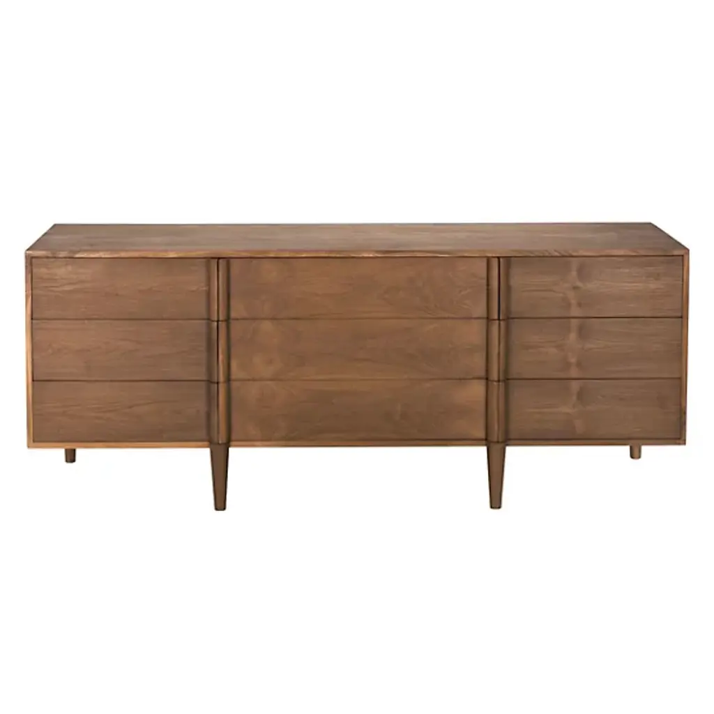 Finished with a Clear Coat Satin, the Briar Dresser from Noir highlights the natural beauty of Teak wood, allowing its warm and inviting tones to take center stage. The satin finish enhances the richness of the wood grain, adding a subtle touch of sophistication while preserving its organic charm. Beyond aesthetics, the finish provides durability and protection against everyday wear and tear, ensuring the piece retains its elegance over time.