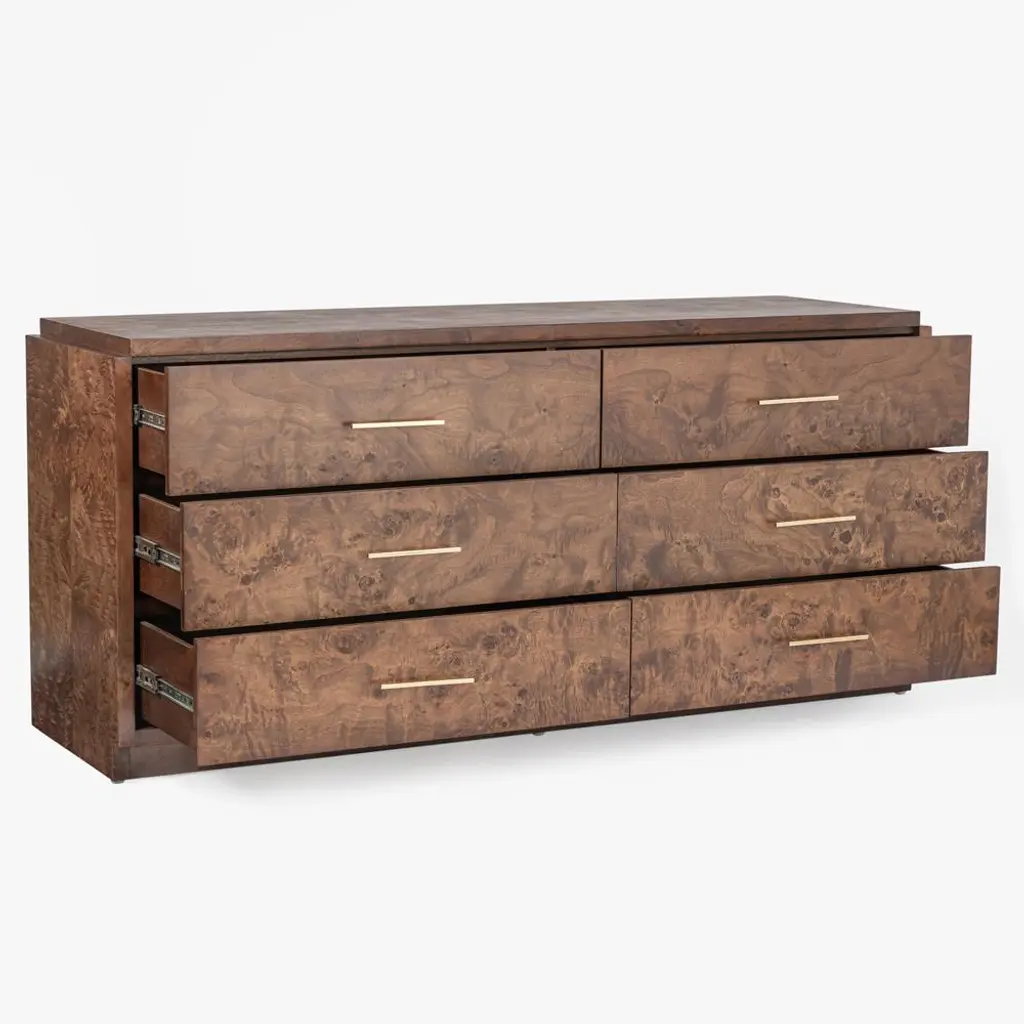 Briella Modern Classic Dark Brown Burl Wood Dresser