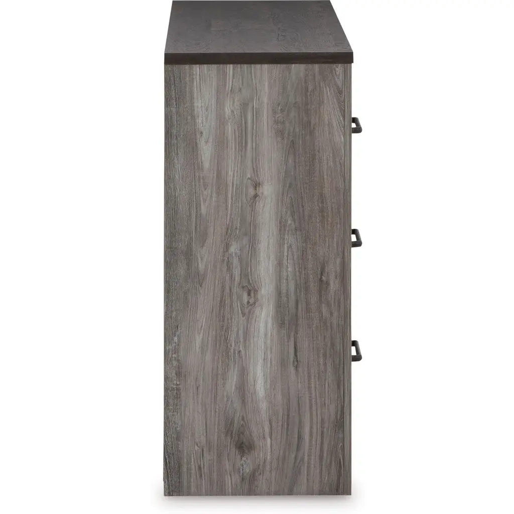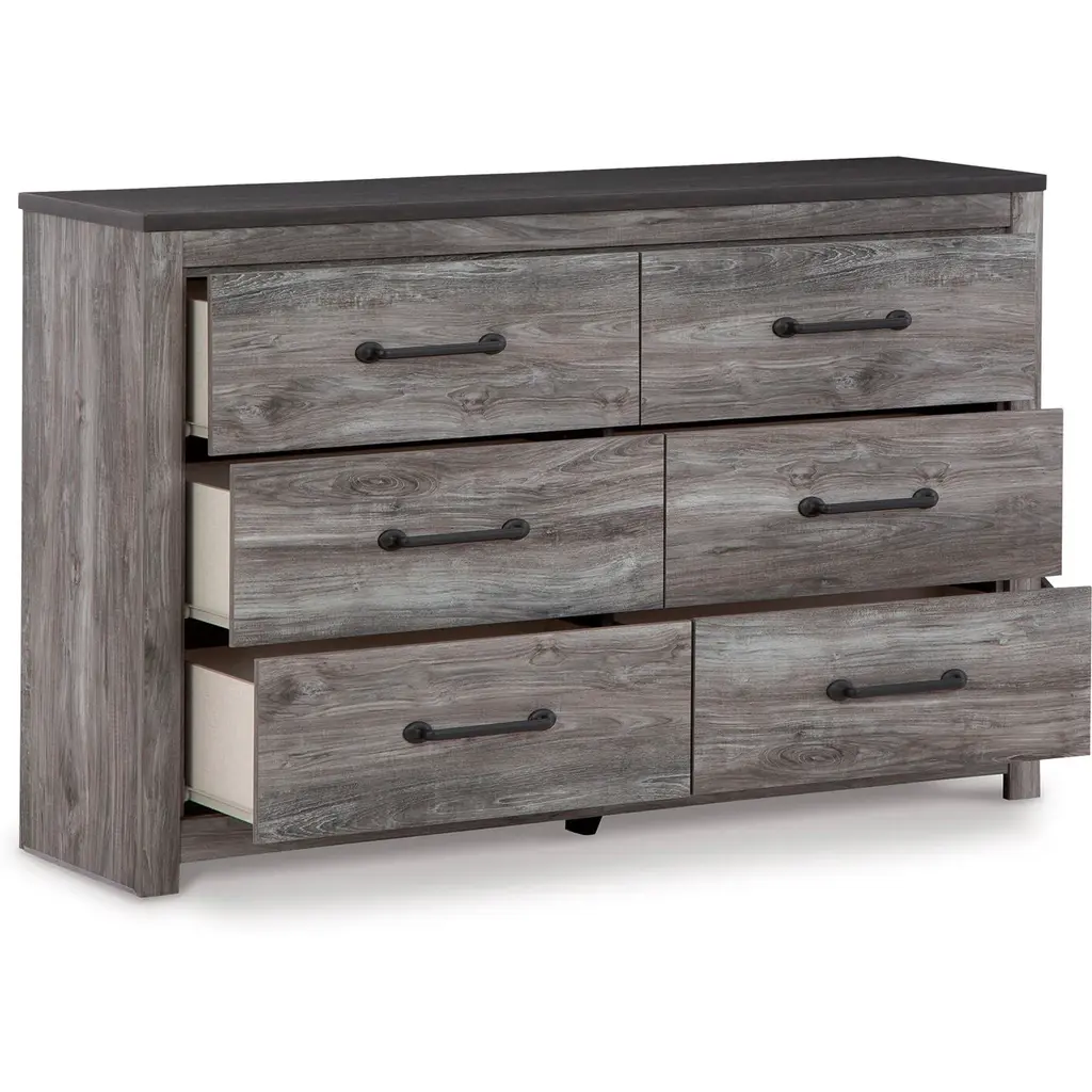 Alluring smoky gray hues create an ambiance that just feels right. This 6-drawer dresser has a charming wood-like appeal enriched by a two-tone, textured look. Light neutral shades contrasted by a dark charcoal finish bring a refined yet relaxed feel to contemporary decor and a sense of serenity to your space.
