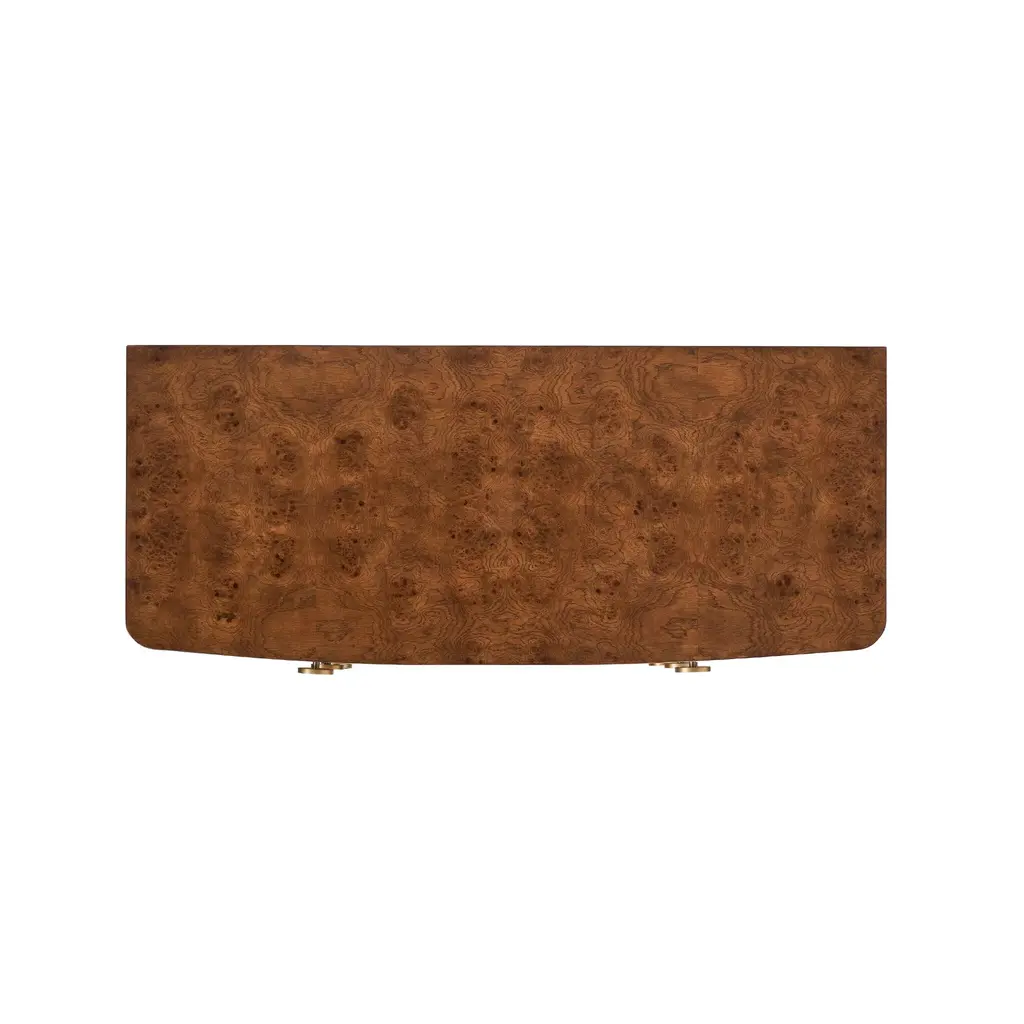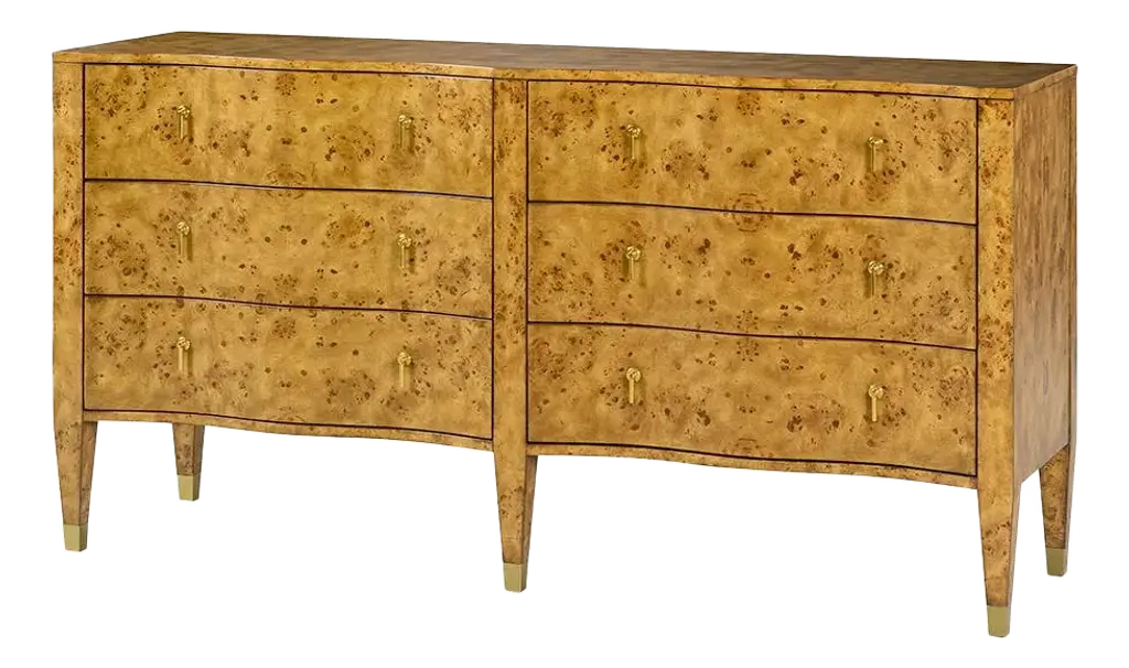 A contemporary design for a timeless burl wood appearance, the Brynn Chest features curved edges and round brass drawer pulls. This piece is versatile enough for living spaces, bedrooms, and even foyers and hallways. Ships In 4-5 Weeks Three drawers Contemporary brass hardware Stunning oak burl wood veneer This image is for illustrative purposes only. The colors shown are accurate within the constraints of lighting, photography, and the color accuracy of your screen.