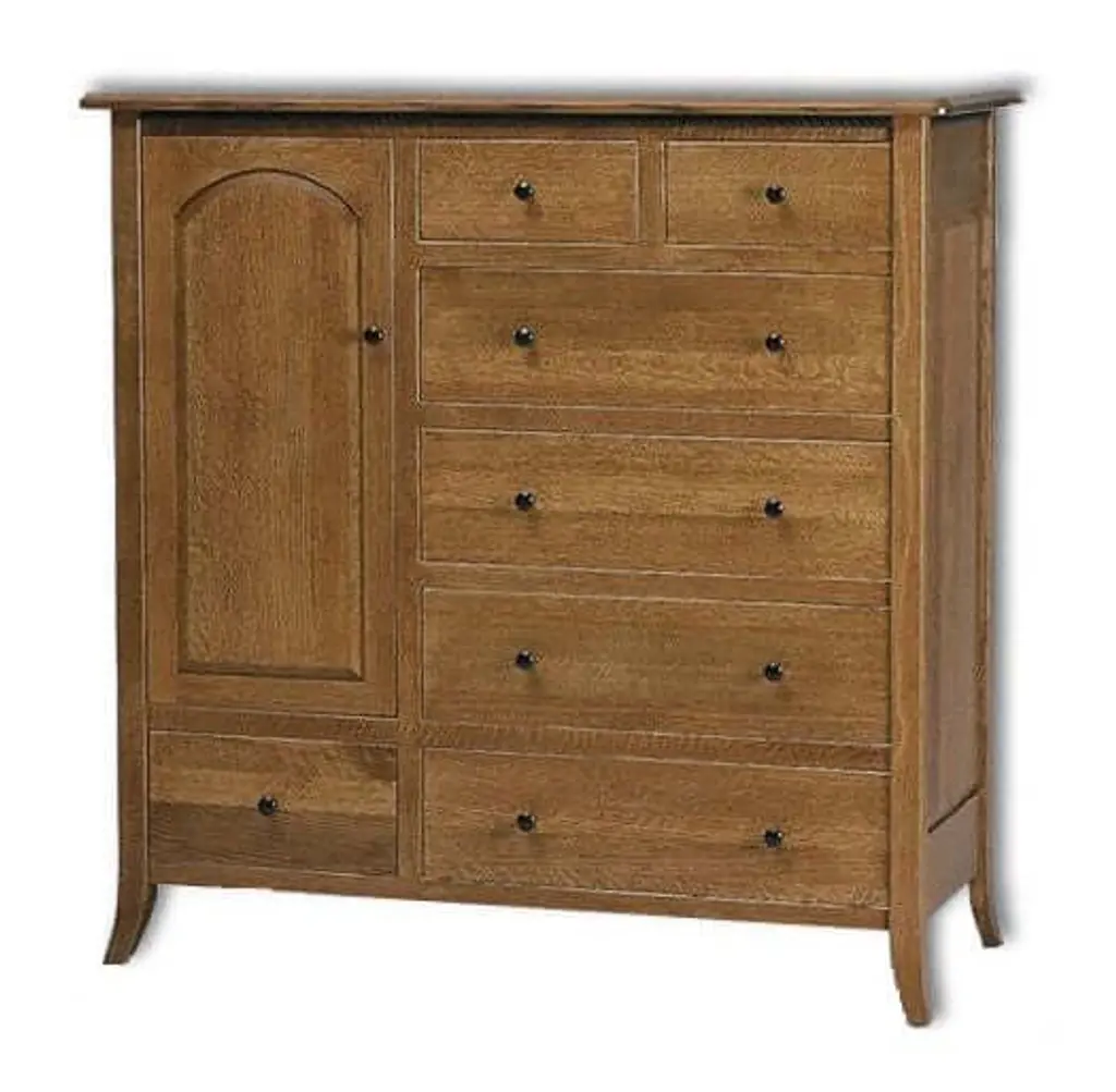 The Bunker Hill is one of our top of the line sets featuring 5/8" thick dovetailed drawer boxes and dual under mount self closing glides. The tops have a very unique slight inward bow and are accented with a beveled edge. A handsome and stunning piece of Amish craftsmanship. This piece will be an elegant and cherished addition for your home.